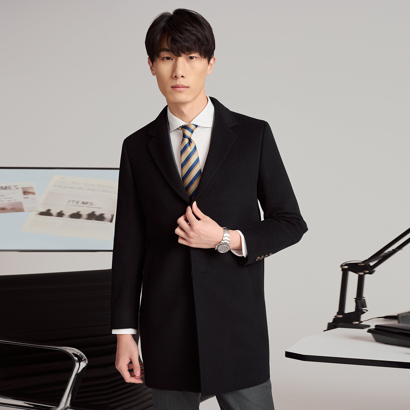 【含羊绒羊毛】韩国25秋冬男士单排扣毛呢大衣musinsa standard