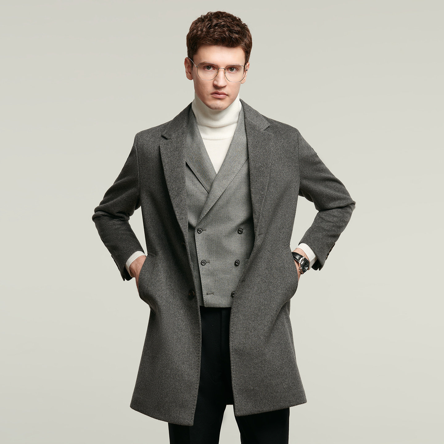 淘海上公路蚕丝山羊绒混纺双面呢大衣男士秋冬季双排扣时尚通勤外套