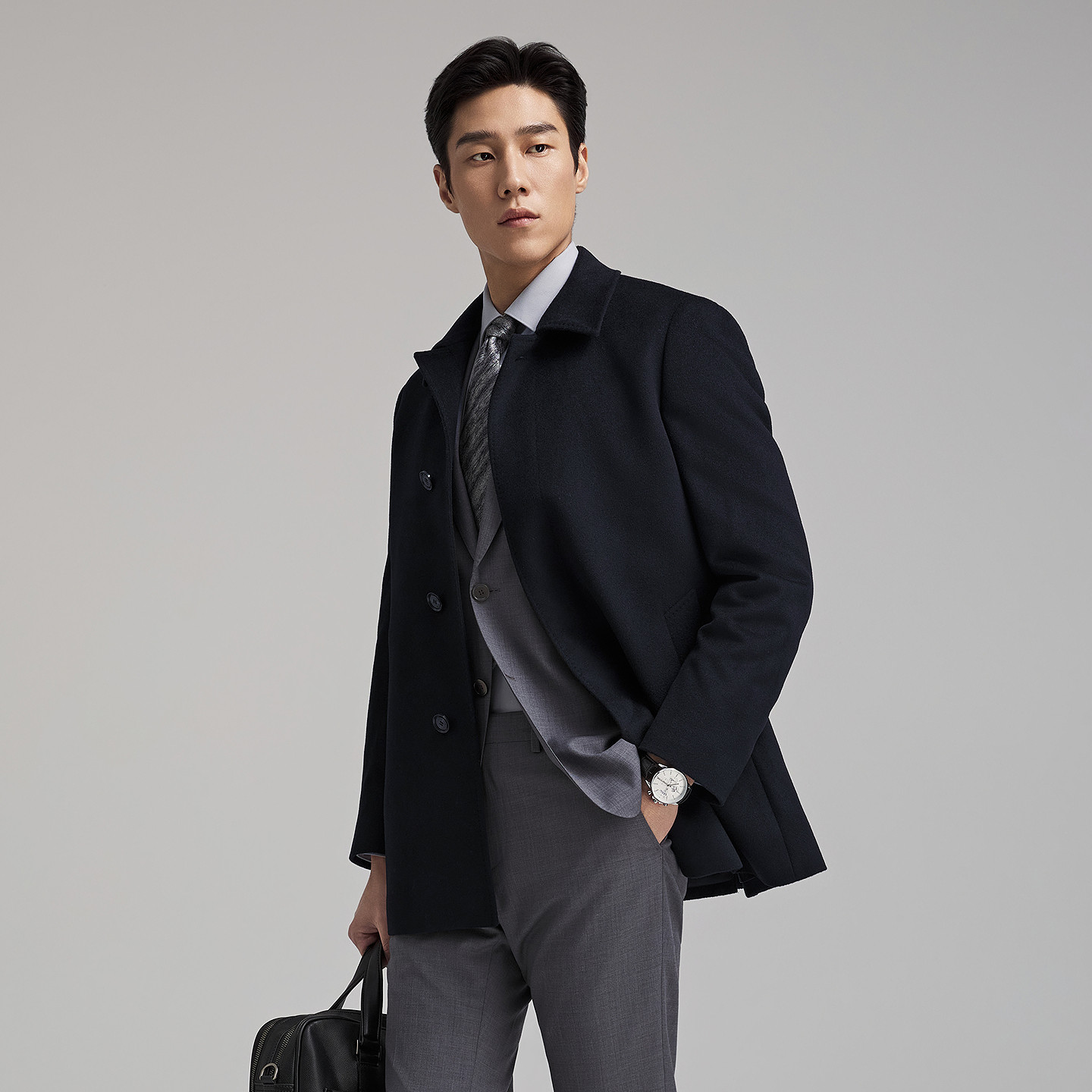淘海上公路蚕丝山羊绒混纺双面呢大衣男士秋冬季双排扣时尚通勤外套