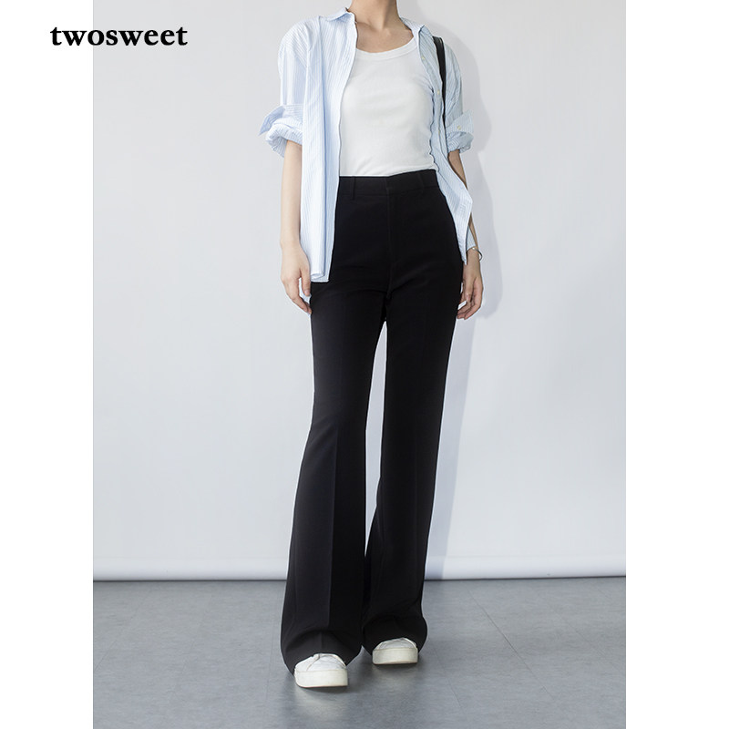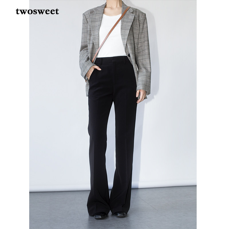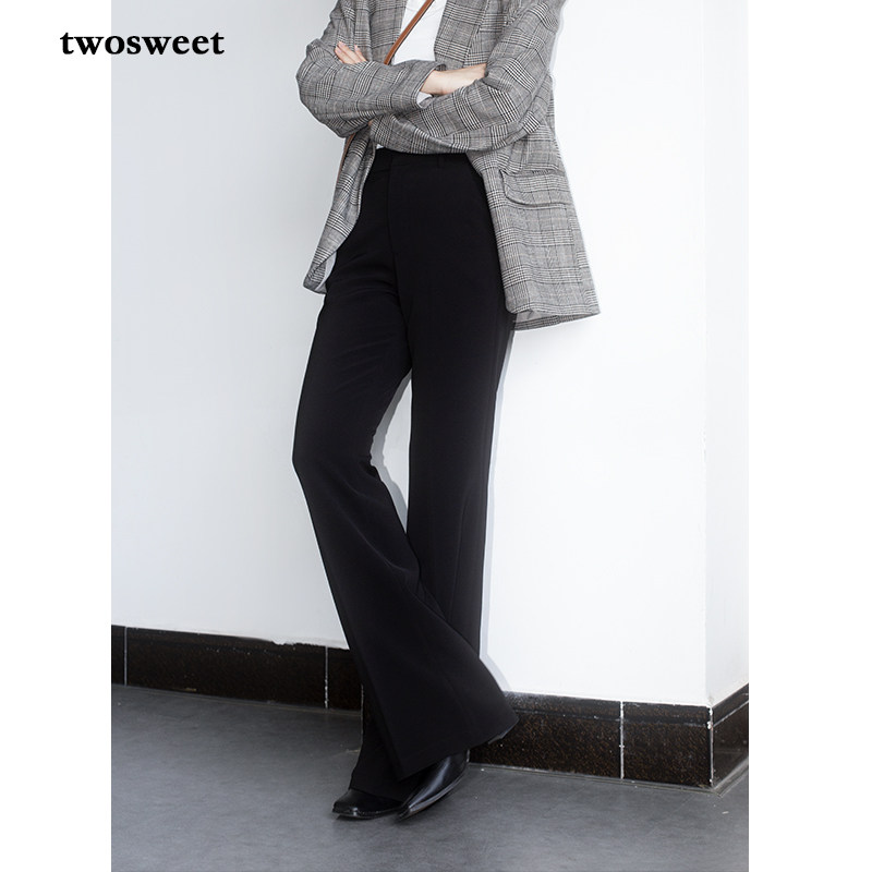 淘宝twosweet【神裤混纺醋酸版】实穿免烫黑色直筒微喇高腰休闲西裤女