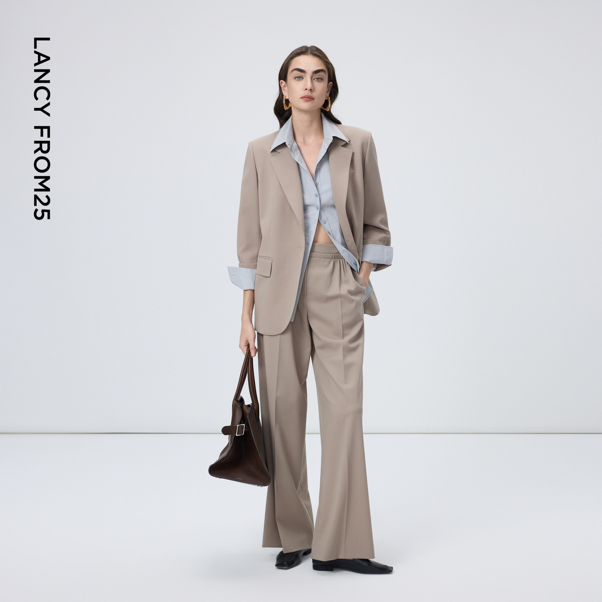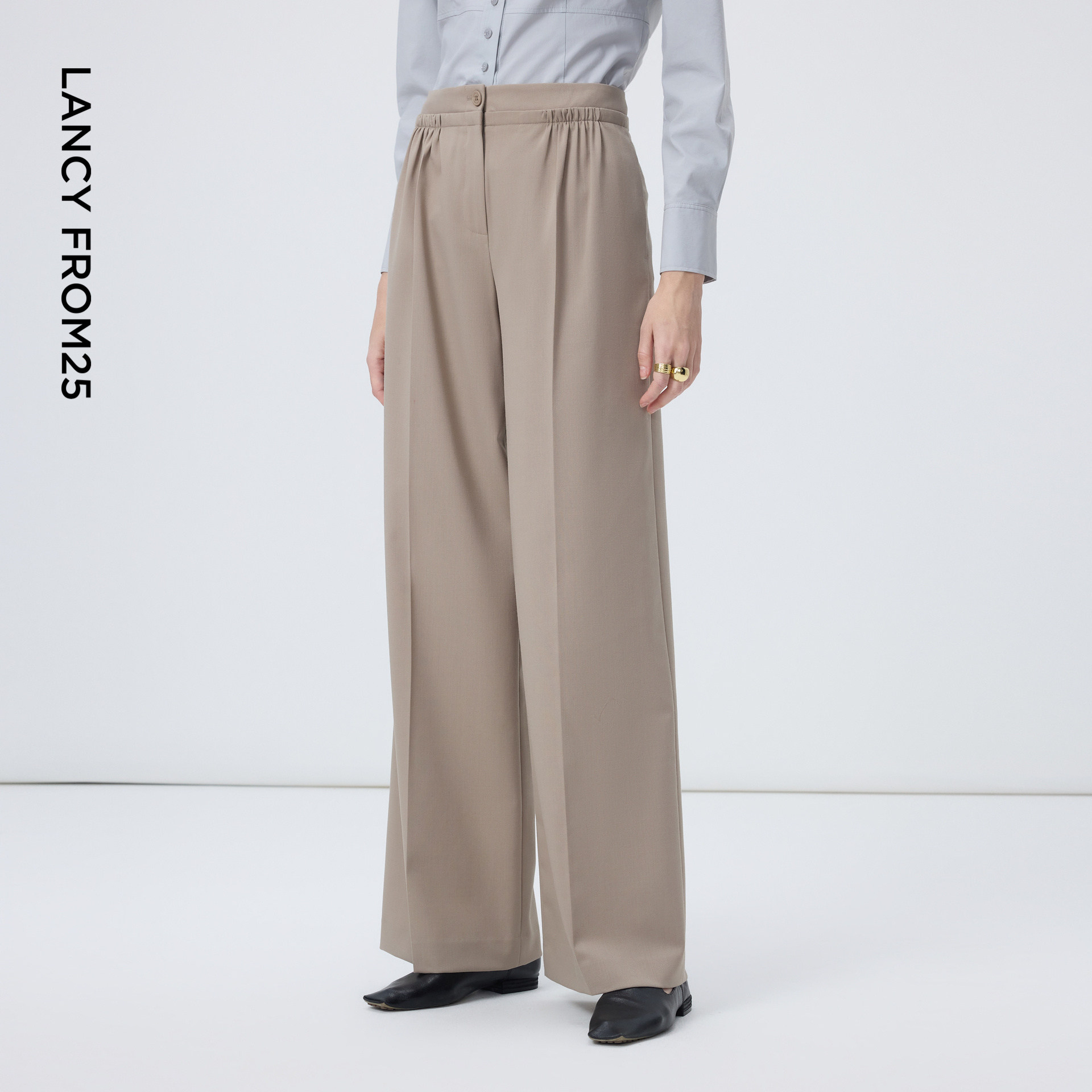 天猫朗姿烟灰色绵羊毛休闲西装裤西裤高级感商务裤子2026年春季新款女