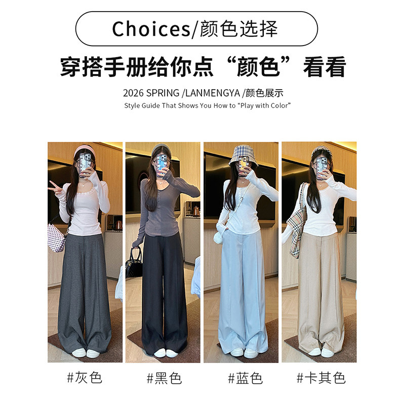 天猫高级感西装裤女春秋2026新款高腰宽松垂感直筒西裤拖地休闲阔腿裤