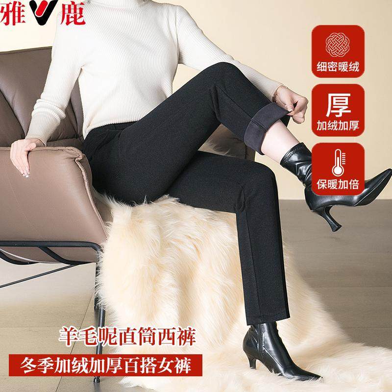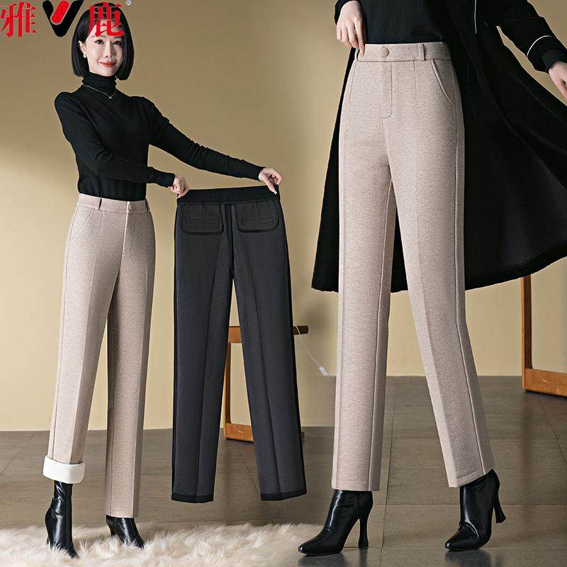 淘宝雅鹿羊毛呢直筒裤女2025新款小个子冬季加绒加厚妈妈裤子外穿西裤