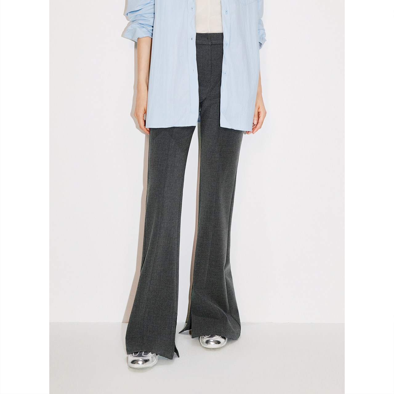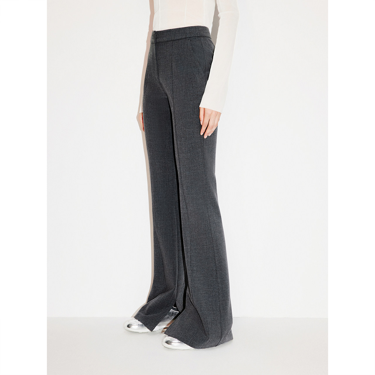 天猫COVERINS灰色TR微喇西裤女修身长款2025冬新款CC35520200
