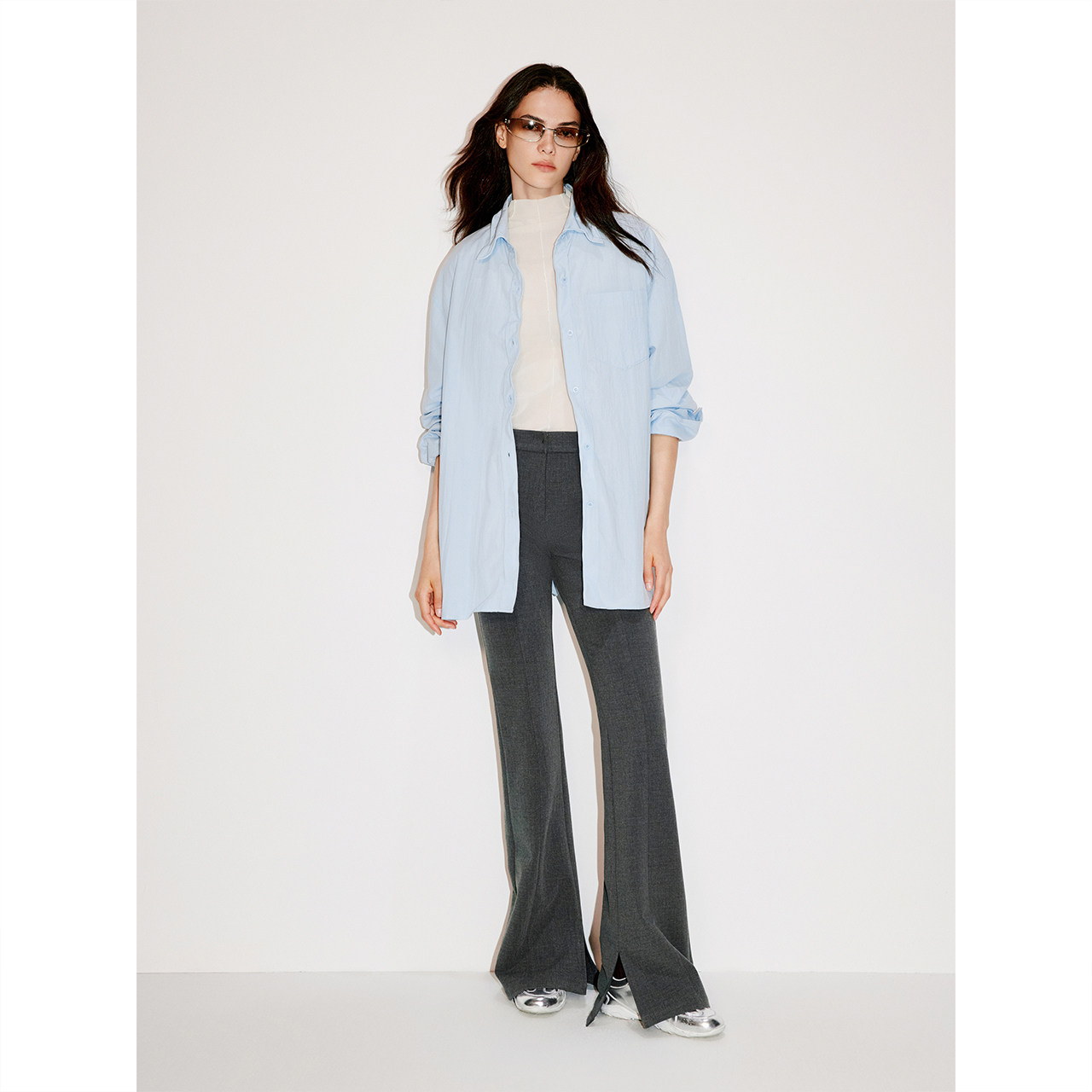 COVERINS 2025冬新款灰色TR微喇西裤(款号:CC35520200)以简约优雅诠释现代女性魅力。采用高品质TR混纺面料,垂坠挺括,兼具舒适与质感。修身剪裁贴合腿部线条,微喇设计巧妙拉长身形比例,展现利落又不失柔美的都市风范。高腰版型提升腰线,搭配西装、针织衫或大衣皆宜,轻松驾驭通勤与轻社交场合。低调高级的灰色调百搭实穿,细节处注重工艺与版型,彰显品牌对品质的坚持。无论是职场干练造型,还是日常优雅穿搭,这条西裤都是不可或缺的时尚单品,诠释自信从容的女性力量。