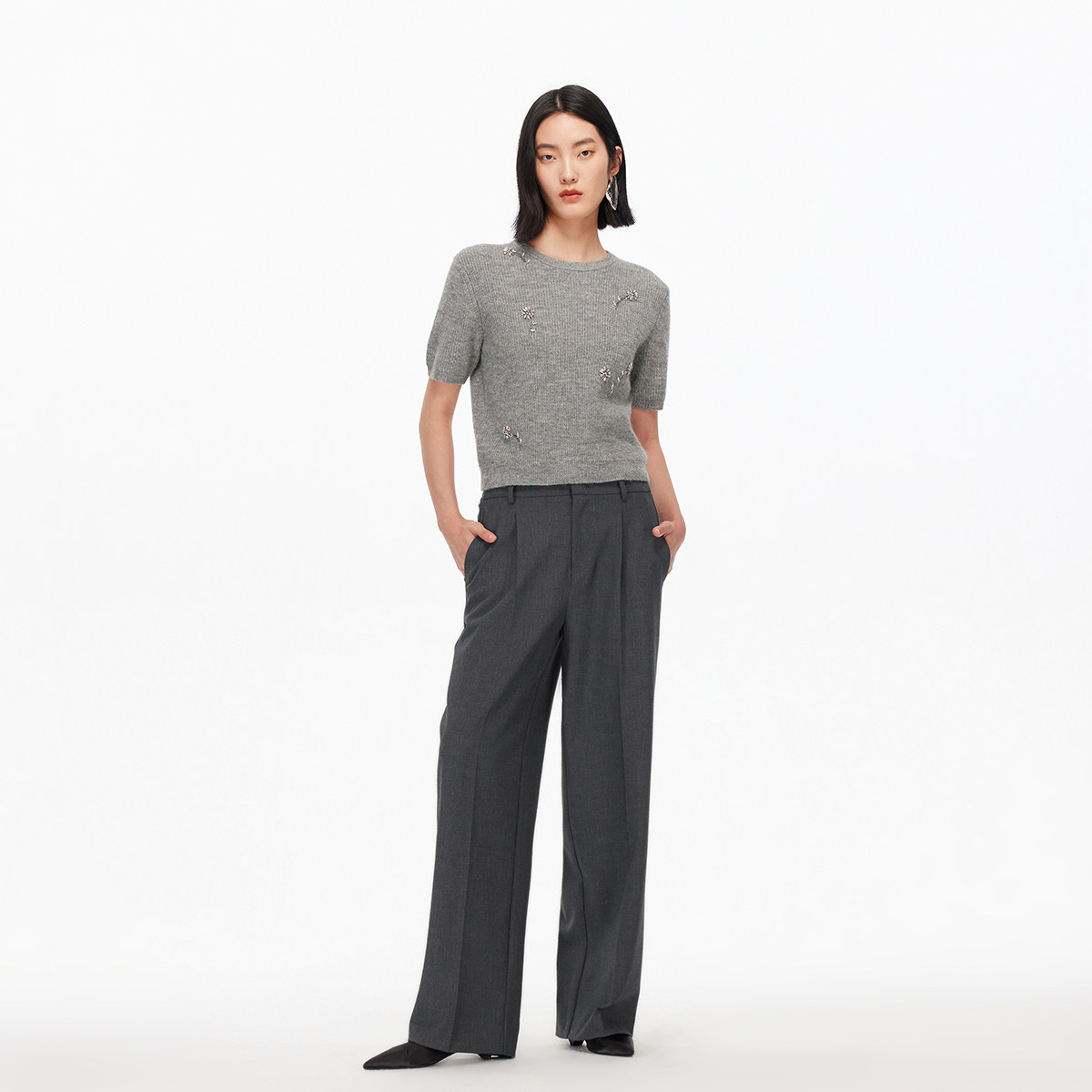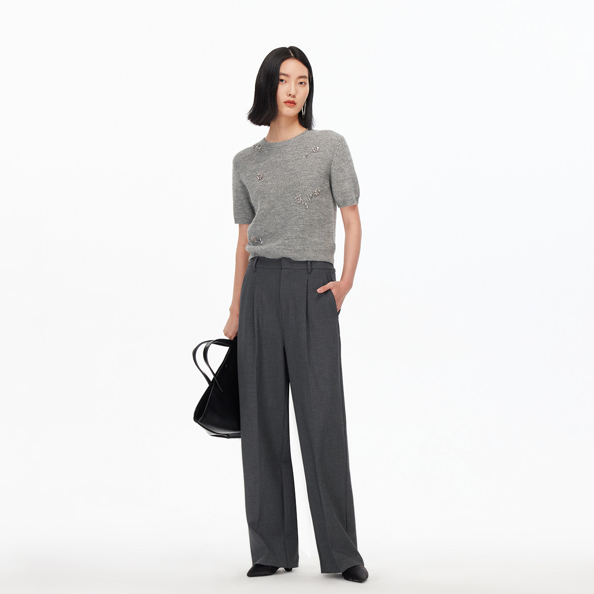 twosweet【神裤混纺醋酸版】实穿免烫黑色直筒微喇高腰休闲西裤女