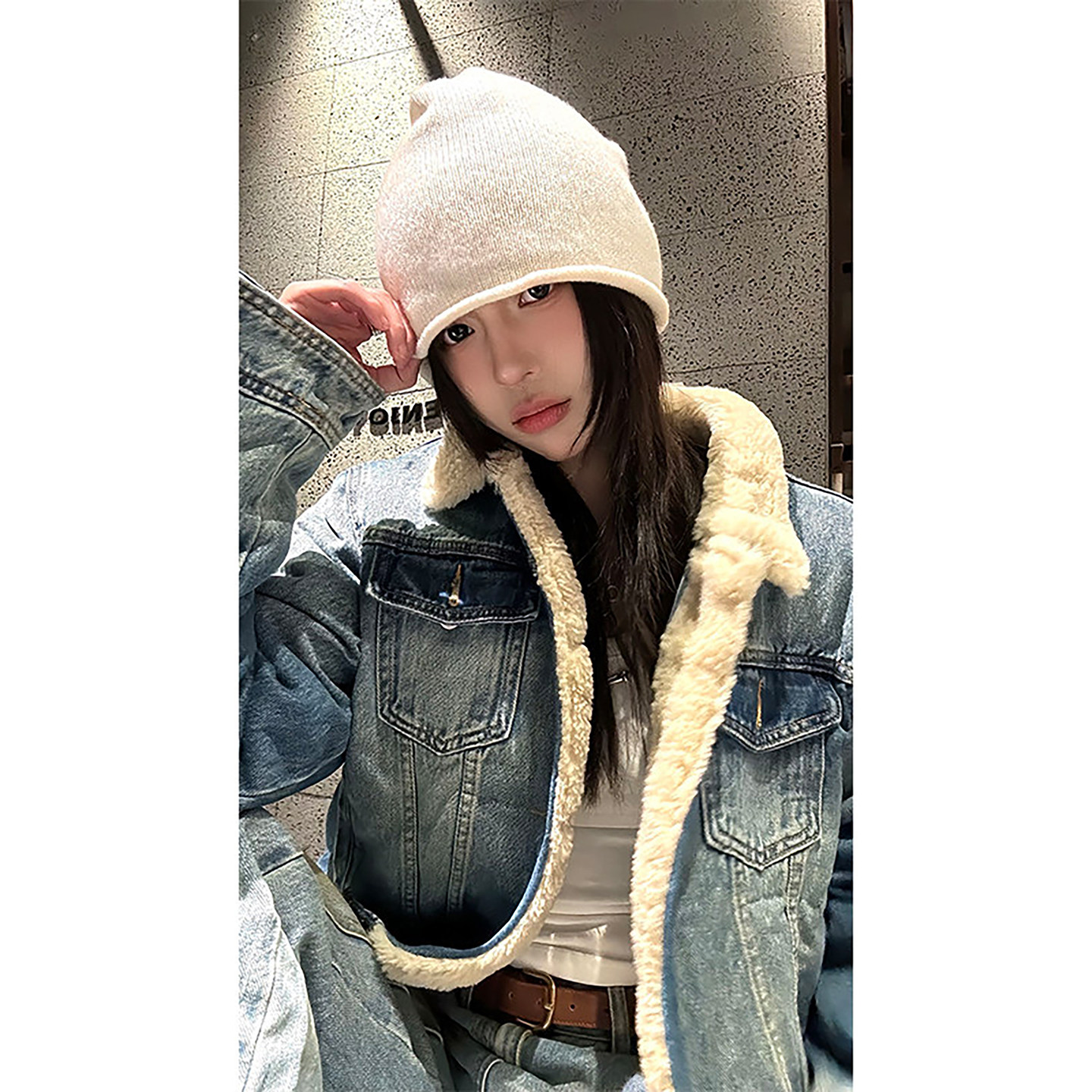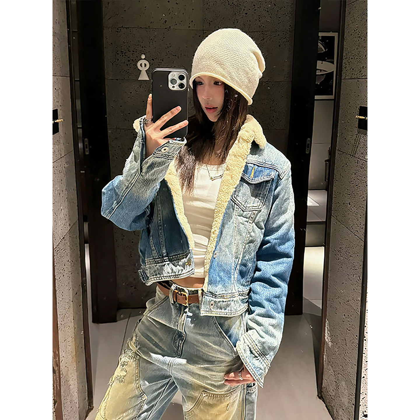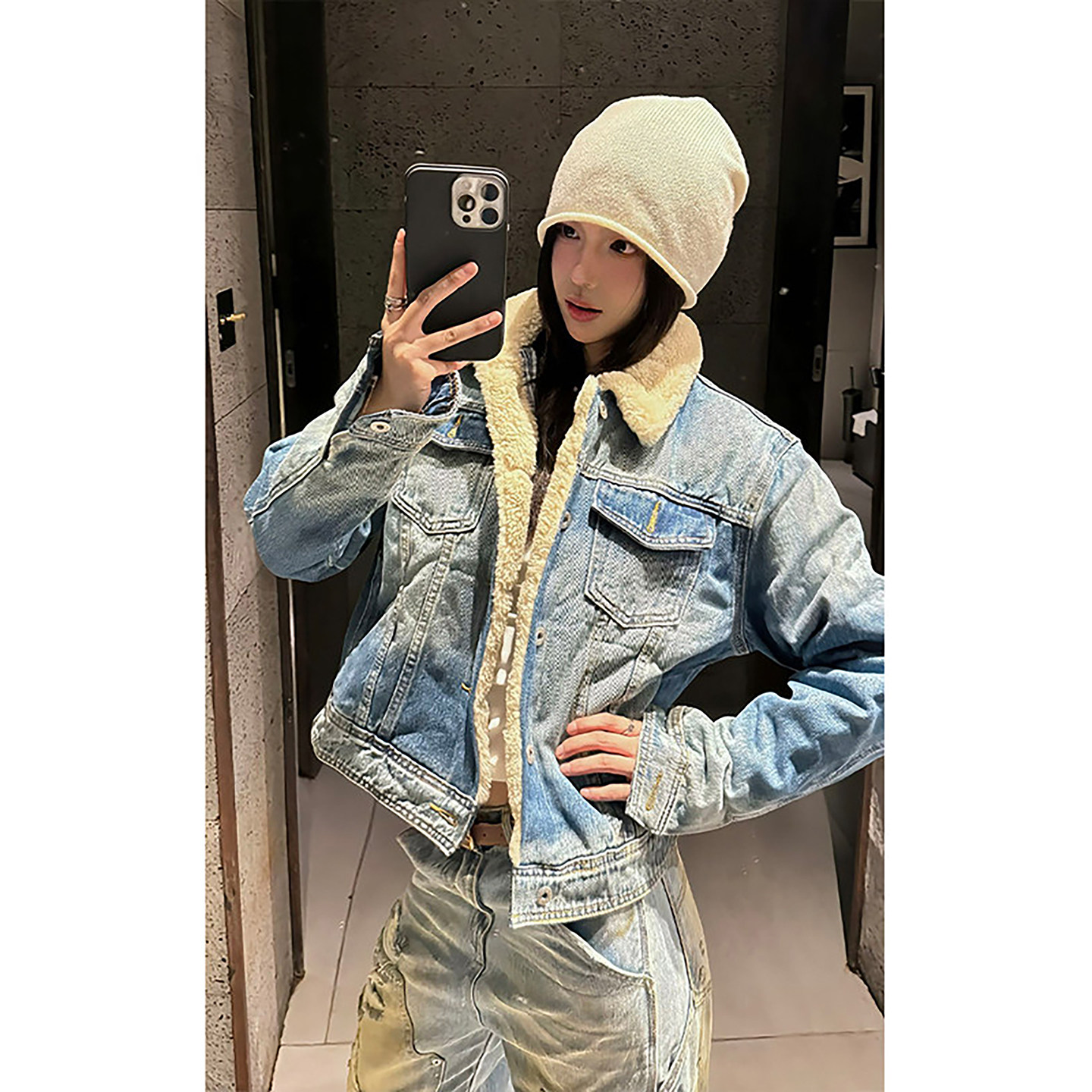 天猫美式复古牛仔羊羔毛外套男冬季翻领工装夹克棉服加绒加厚保暖棉衣