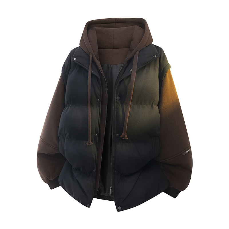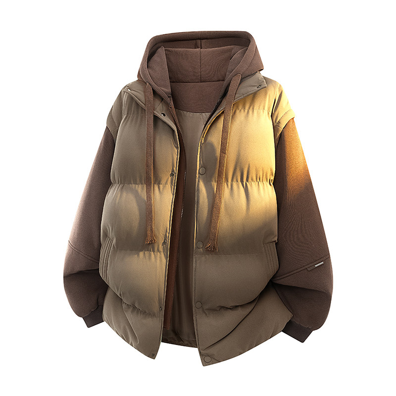 这款男士秋冬季新款假两件棉服,融合休闲与潮流元素,采用oversize宽松版型设计,轻松穿出美式街头范儿。外层为高品质防风面料,内里填充优质棉绒,保暖舒适,适合秋冬日常穿搭。假两件设计巧妙拼接,视觉层次丰富,搭配开衫式前襟,穿脱便捷又显随性气质。大码剪裁包容性强,适合多种体型,彰显潮牌个性态度。无论是搭配牛仔裤还是束脚裤,都能轻松打造时尚休闲造型,是追求潮流与实用兼具的型男必备单品。