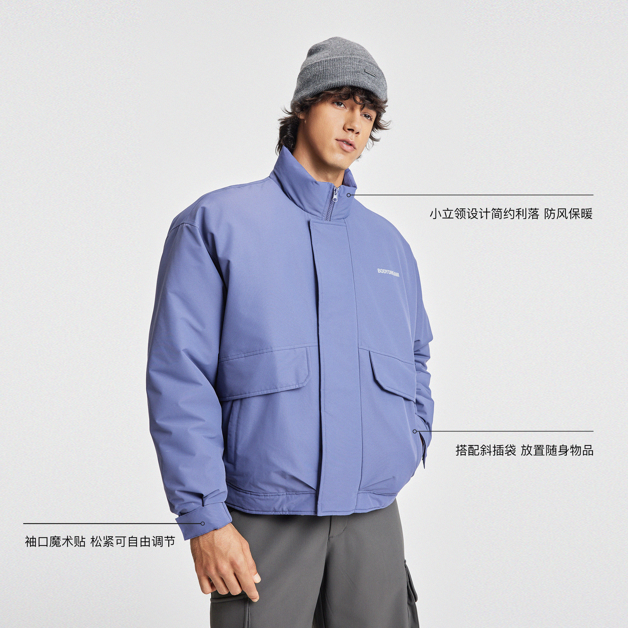 天猫BODYDREAM运动防水羽绒服男冬季立领短宽松鸭绒外套/袖口魔术贴