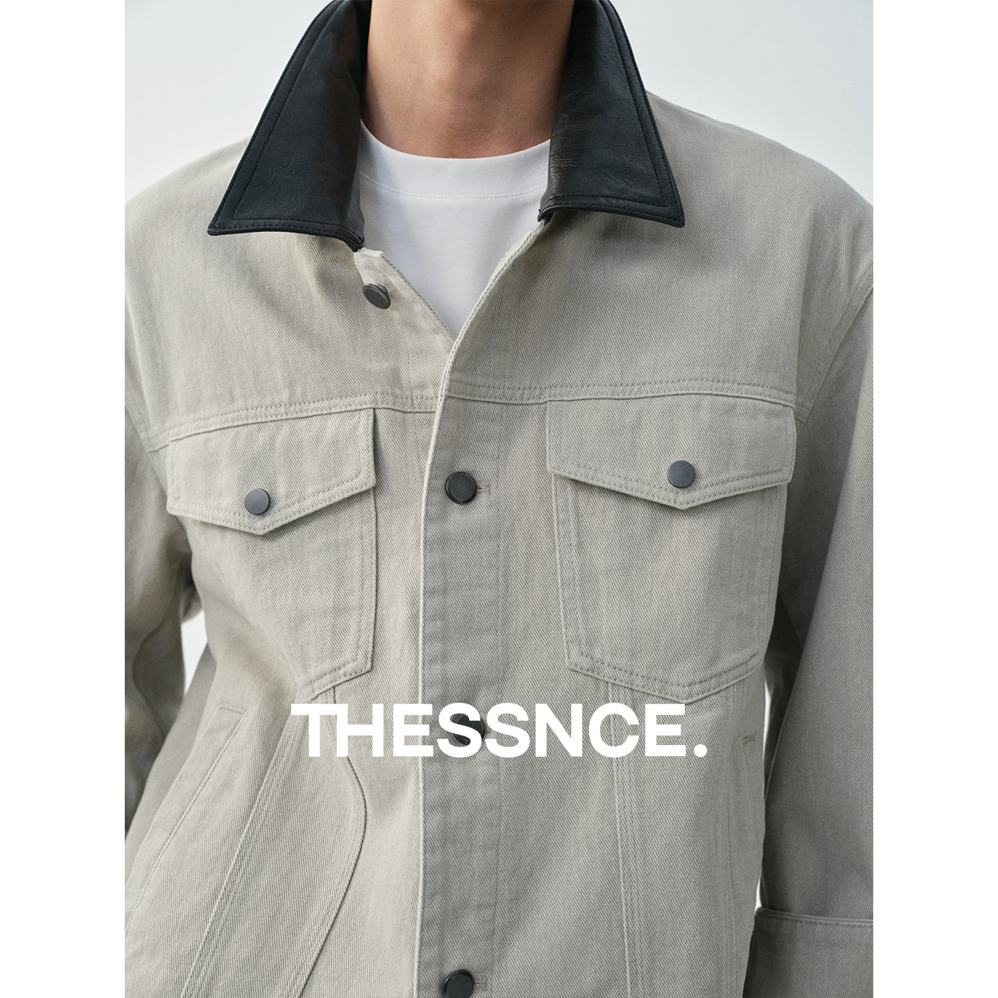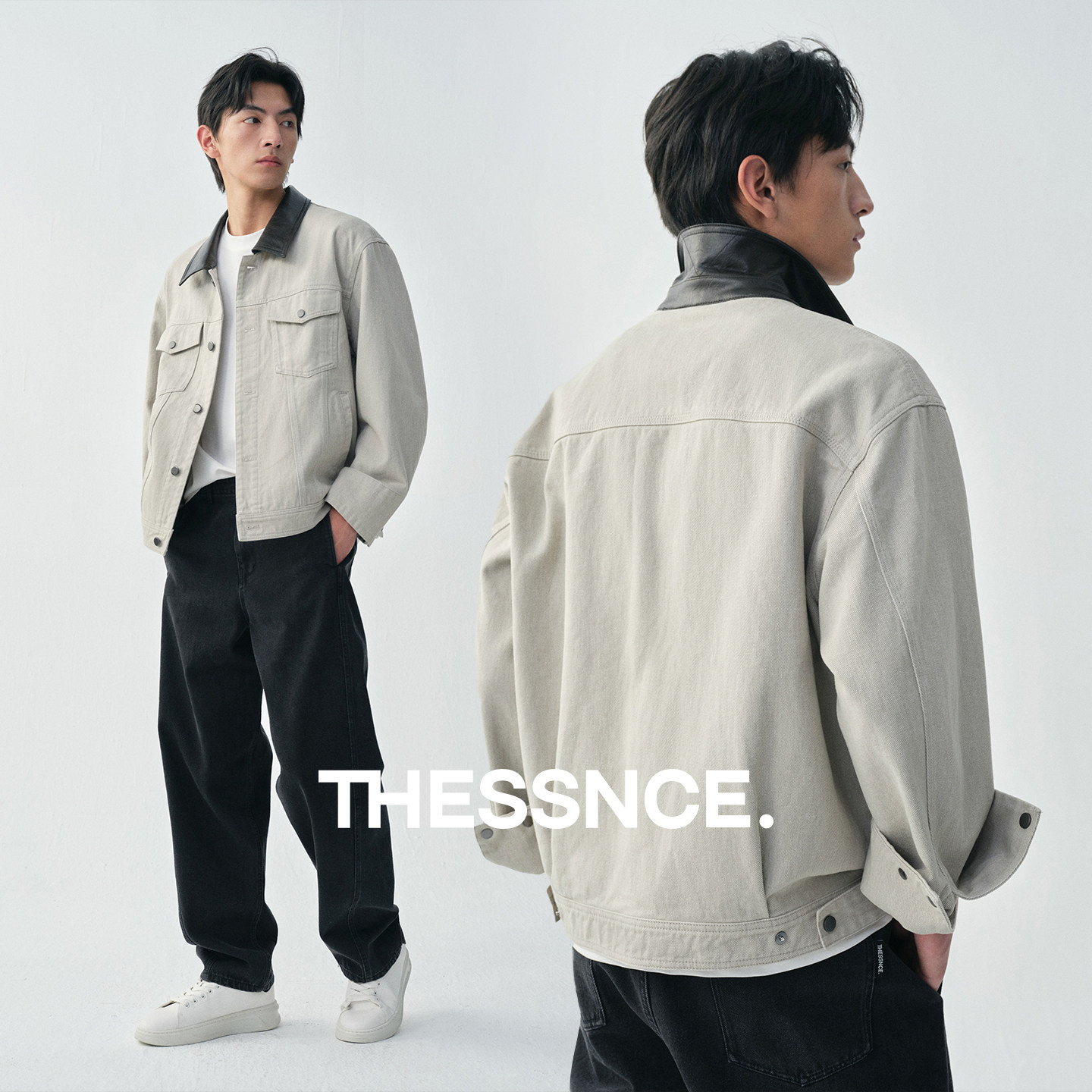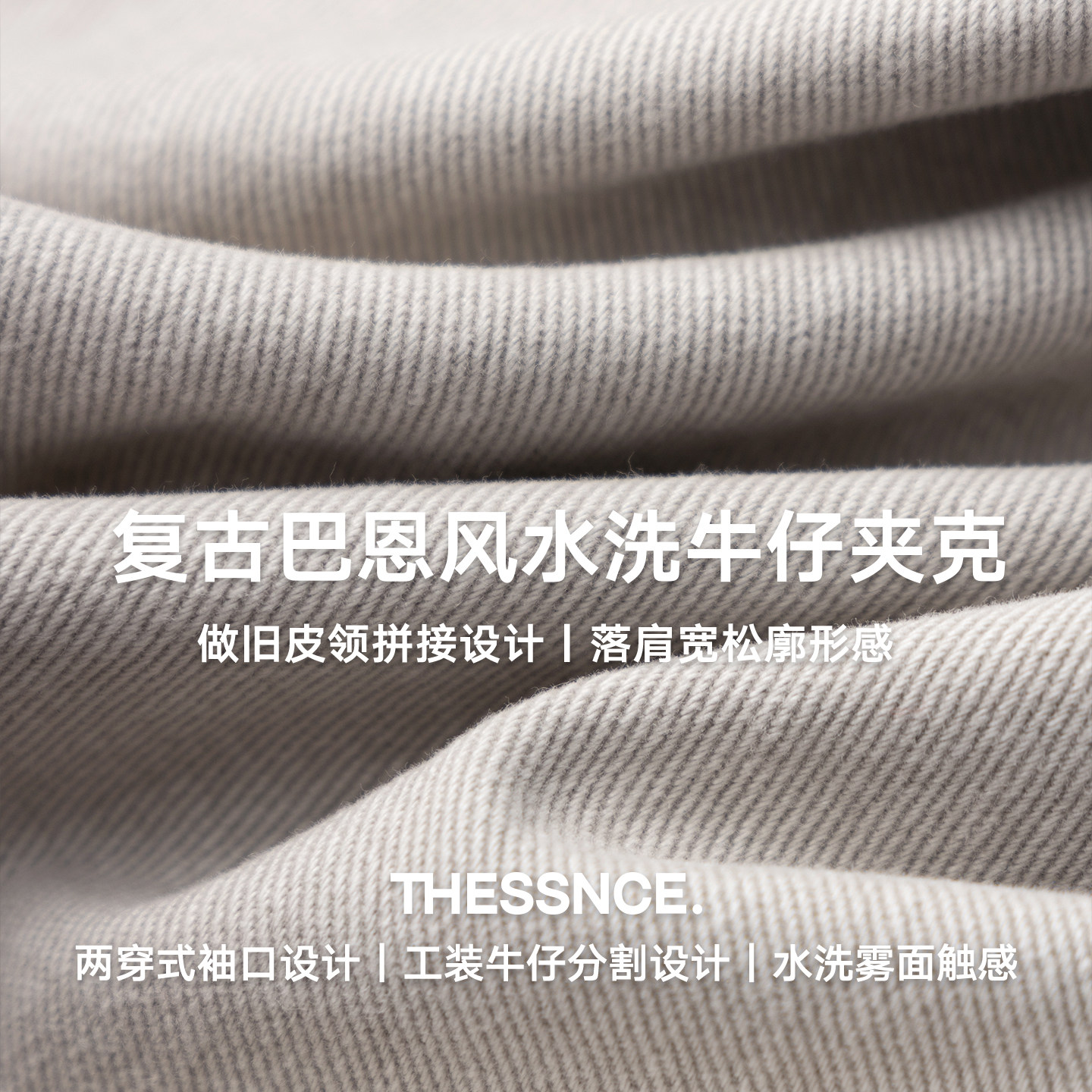 天猫复古巴恩风 重磅做旧工装水洗牛仔拼接撞色皮领早春夹克外套男士