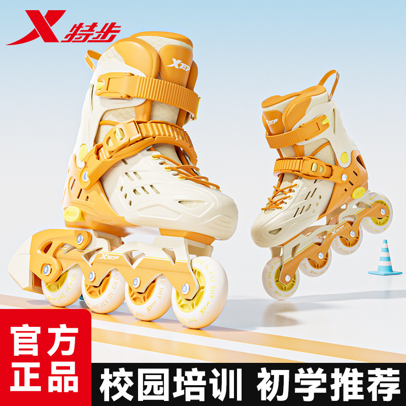 天猫特步儿童轮滑鞋专业初学者成人男女童直排滑冰旱冰鞋滑轮6到12岁