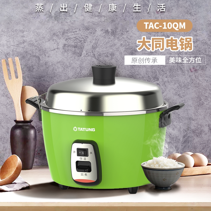 TATUNG台湾大同电锅10QM是一款集蒸、煮、卤、炖于一体的4L多功能家用电饭煲,采用优质无涂层不锈钢内胆,安全健康,不易刮花,杜绝化学涂层脱落风险。经典复古外观设计,融合现代工艺,操作简便,一键启动即可轻松烹制米饭、煲汤、炖肉及蒸煮各式料理。内置智能温控系统,精准控温,确保食材均匀受热,锁住营养与鲜味。外锅可拆卸清洗,使用更便捷。适用于3-5人家庭,是追求健康饮食与便捷烹饪的理想选择。传承大同70余年电器制造经验,品质可靠,耐用性强,兼具实用与美观,为现代厨房增添一份安心与美味。