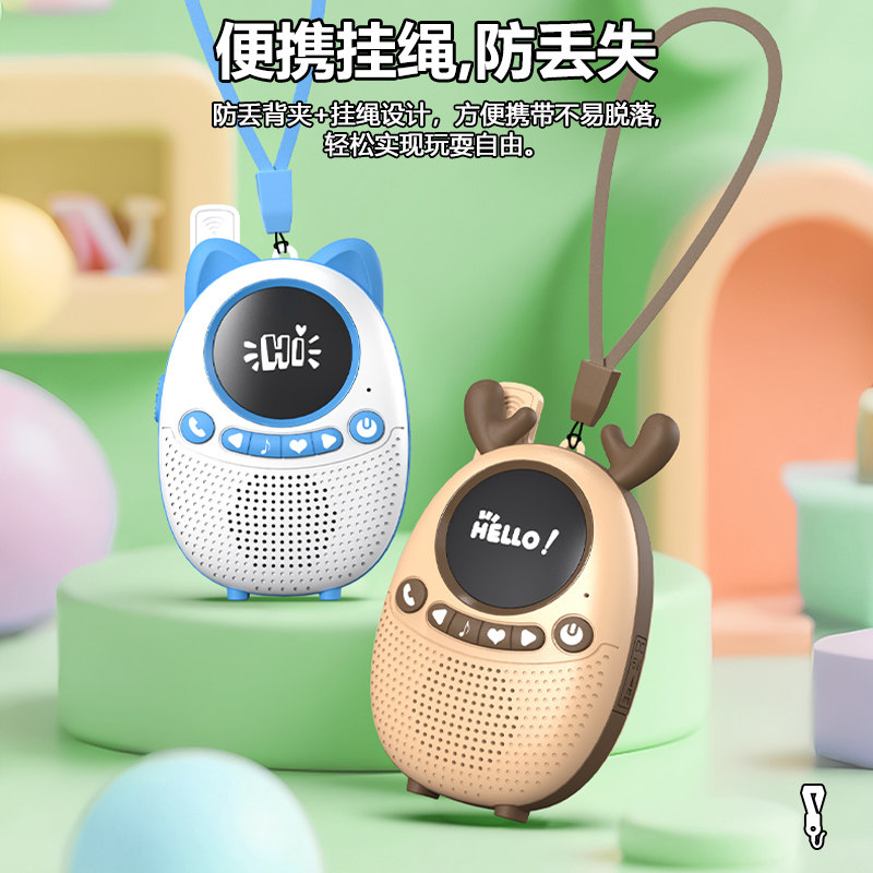 全新儿童对讲机,专为亲子互动与户外探索设计,让爱无距离!采用安全环保材质,轻巧便携,音质清晰,有效距离可达500米,适合公园、露营、小区等多种场景。一键通话、音量可调,操作简单,孩子轻松上手。不仅支持亲子远距离对话,还能激发孩子想象力,融入过家家、角色扮演等益智游戏,提升语言表达与社交能力。多彩可爱造型,安全圆润边角,是送给女孩的理想生日礼物。陪伴成长,从每一次畅聊开始——这款对讲机,让沟通更有趣,让亲子时光更温馨!