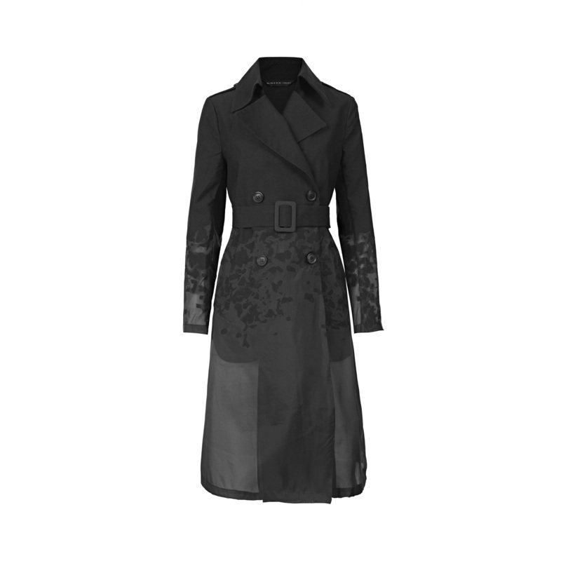 天猫sdeer圣迪奥春装女装翻领印花收腰双排扣长款风衣S22181814