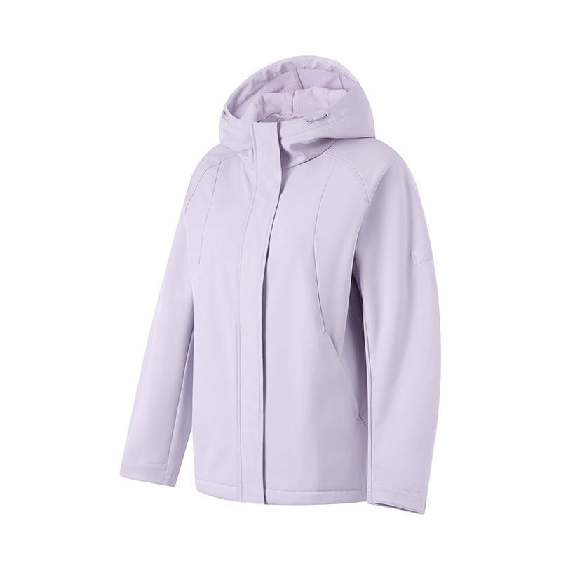 李宁跑步系列软壳衣女冬季加绒保暖宽松连帽运动风衣AFDU348-B品