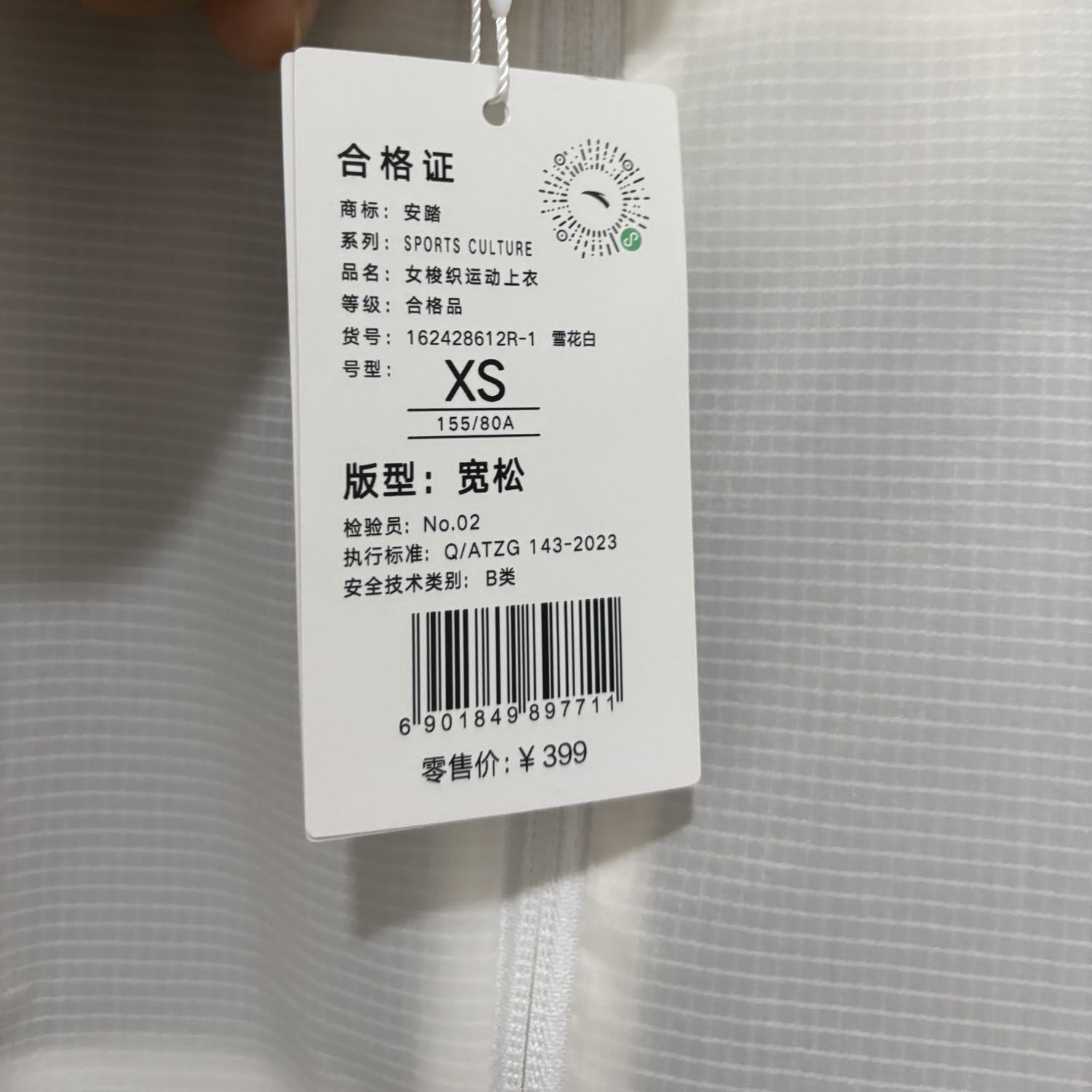 淘宝安踏正品夏季休闲连帽防晒衣梭织风衣青年跑步女上衣162428612R