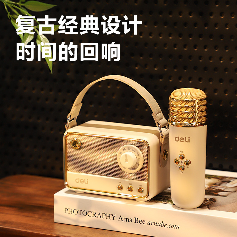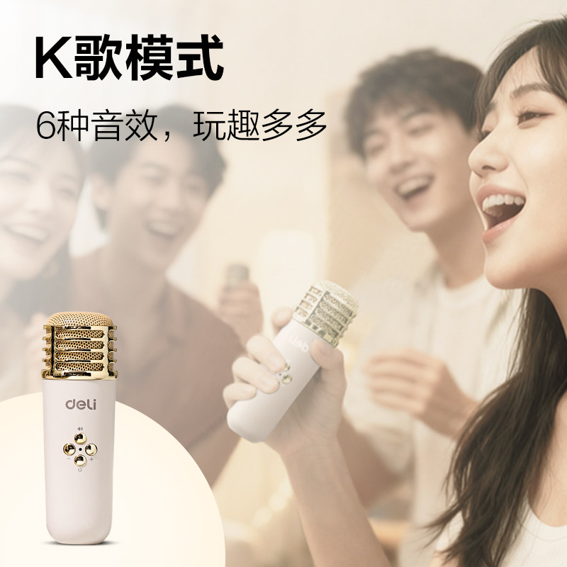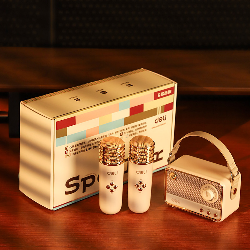 得力麦克风话筒K歌音响是一款集无线麦克风、蓝牙音箱与卡拉OK功能于一体的家用娱乐设备,适合全家K歌娱乐。采用2.4G无线传输技术,连接稳定,有效避免断频杂音,支持蓝牙、TF卡、U盘等多种播放方式。内置高灵敏度电容麦头,音质清晰,配合大功率扬声器,带来震撼音效。具备混响调节、音量控制等功能,轻松营造KTV氛围。小巧便携,内置大容量电池,续航持久,适合家庭聚会、儿童练歌、户外活动等场景。无论是大人欢唱还是孩子表演,都能畅享音乐乐趣,是家庭娱乐的理想选择。