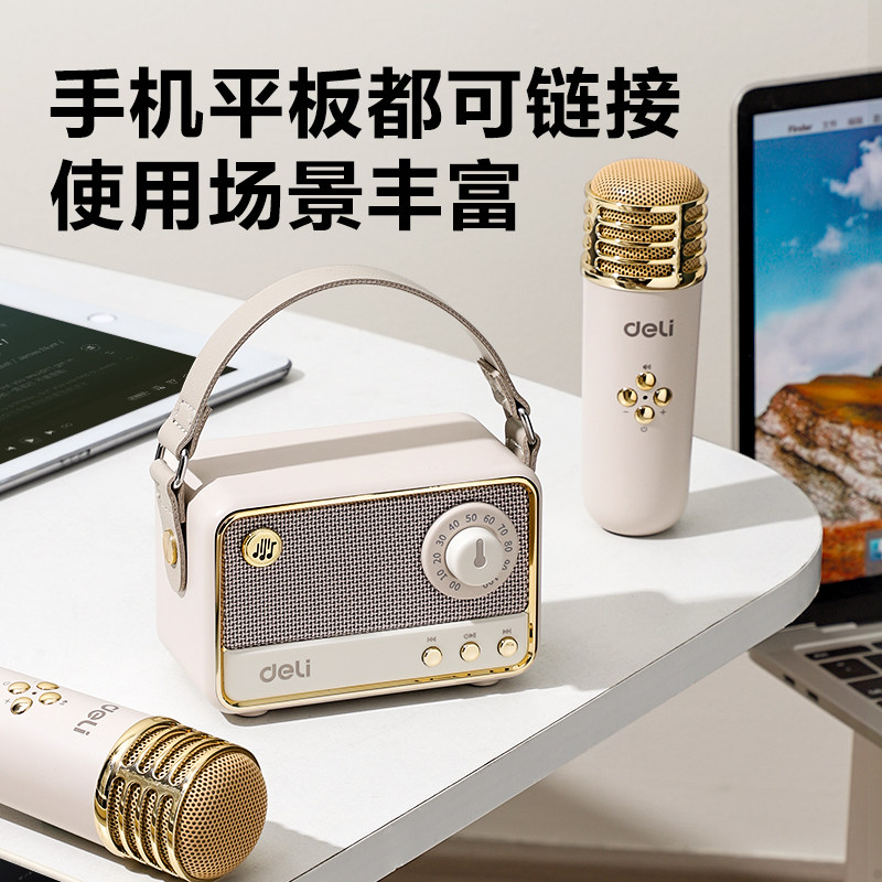 天猫得力麦克风话筒K歌音响唱歌家庭用话筒一体儿童KTV无线音箱卡拉OK