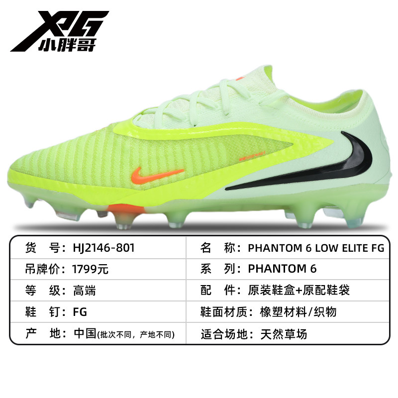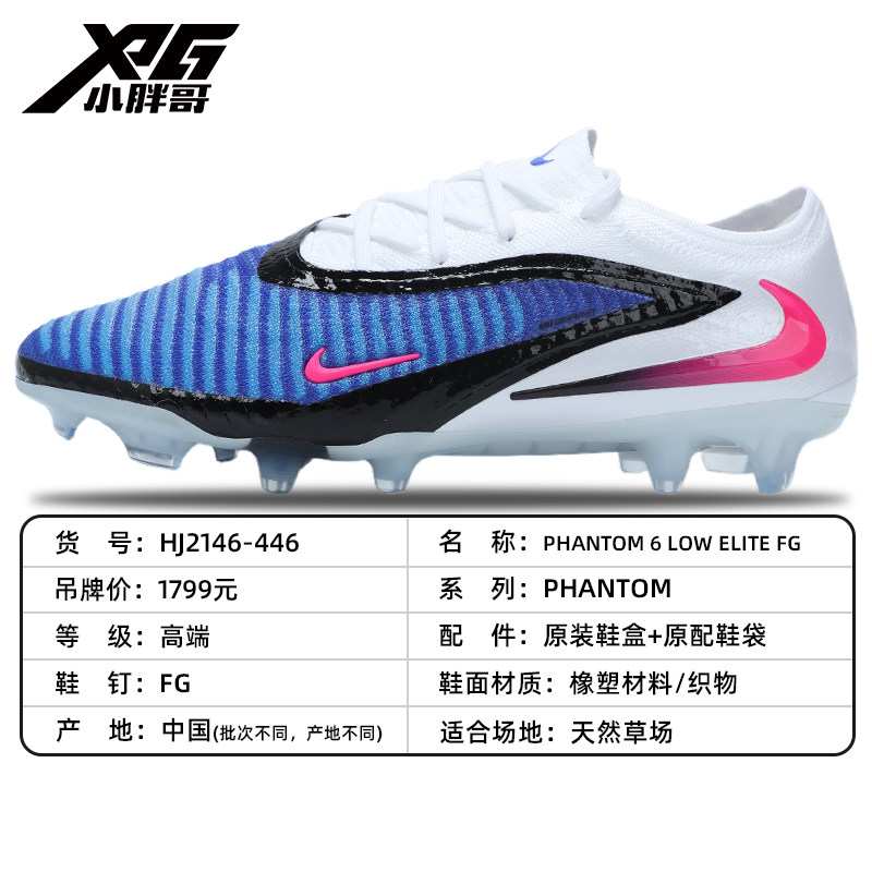 淘宝小胖哥XPG耐克PHANTOM 6暗煞GX高端FG真草长钉低帮成人足球鞋男女