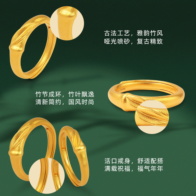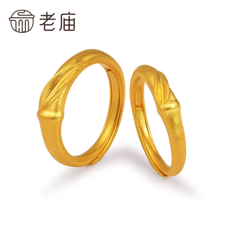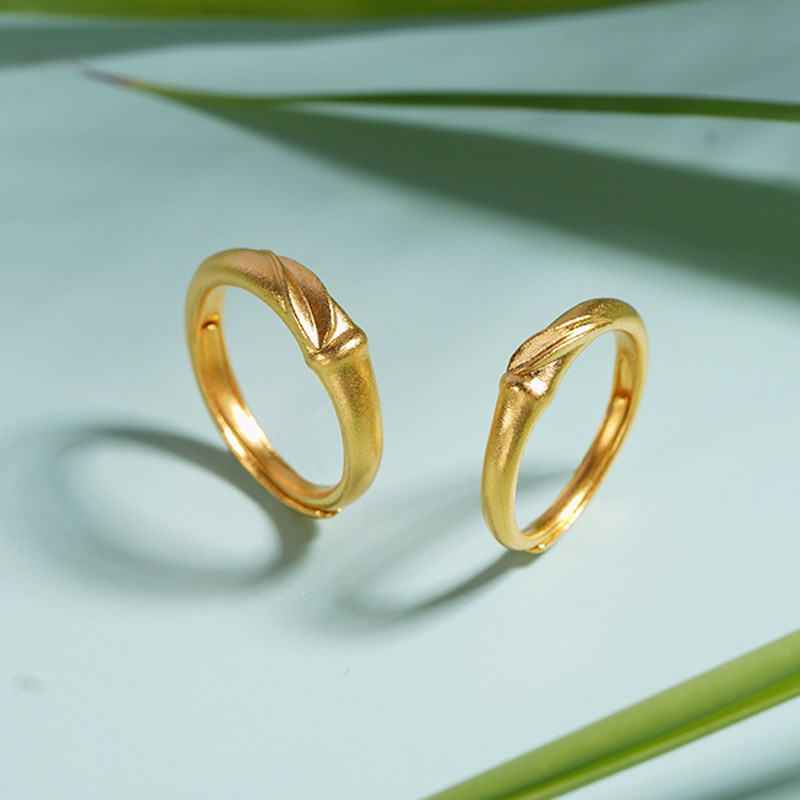 天猫老庙黄金足金999竹韵竹叶古法对戒男女戒指情侣戒新中式古典国风