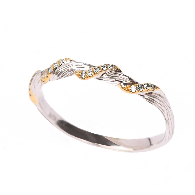 Ree.树梢系列18K白金与黄金交织的天然钻石藤蔓荆棘戒指,以自然为灵感,融合极简与力量美学。戒圈采用双色金属缠绕设计,模拟藤蔓蜿蜒之态,荆棘细节锋利而克制,象征坚韧与自由。主石选用高品质天然钻石,点缀其间如晨露凝枝,低调闪耀。整体造型中性大气,适合叠戴或单独佩戴,兼具小众艺术感与日常实戴性。灵感源自森林深处的静谧与野性,传递独立不羁的生活态度。Ree.树梢,为追求独特风格的你,打造指尖上的自然诗篇。