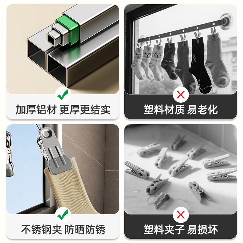 天猫吸盘袜子晾晒架多夹子隐形晾衣架阳台多功能内衣裤挂架晒袜子神器