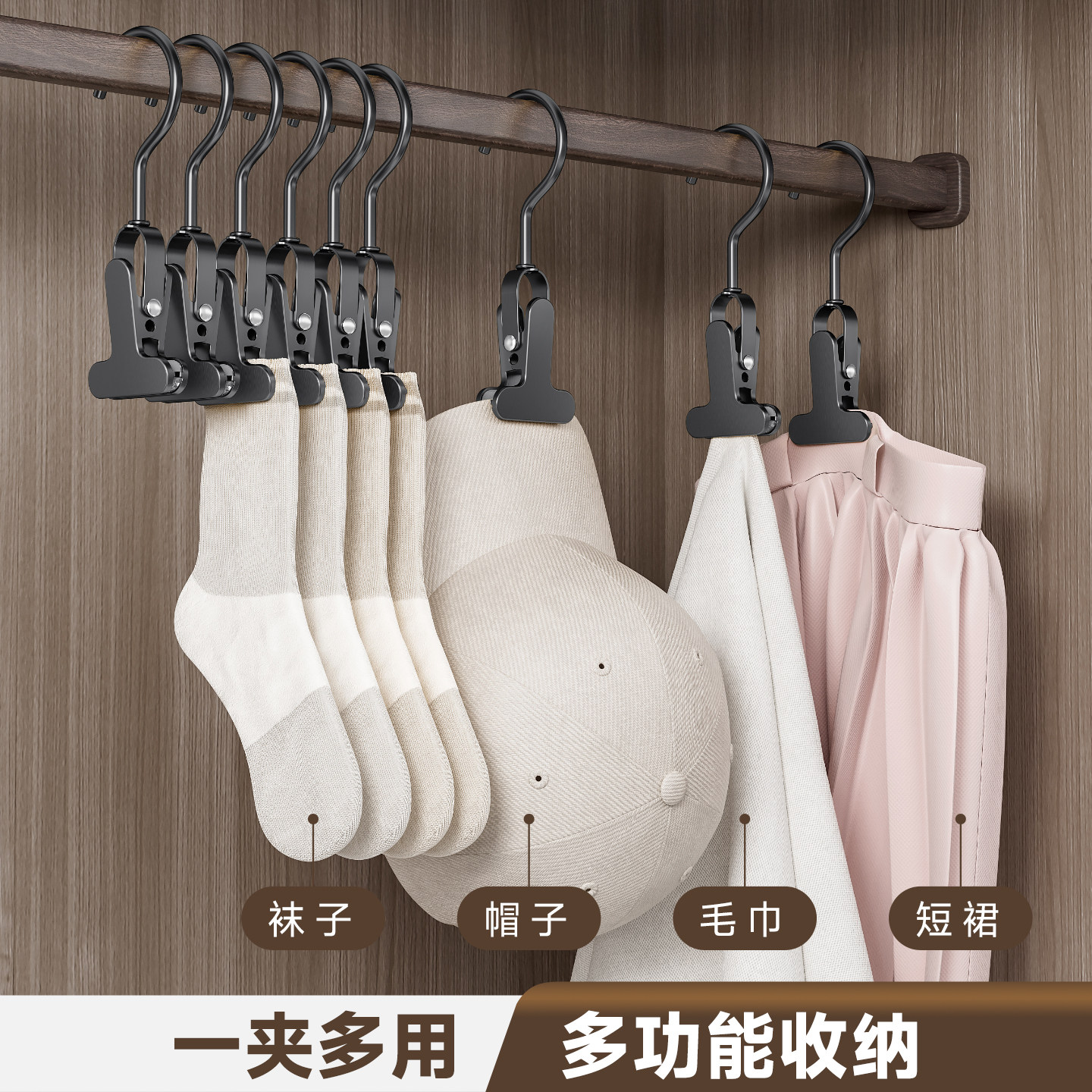 天猫多功能挂钩夹子铝合金家用收纳衣架裤架晾衣夹家用多功能单个无痕