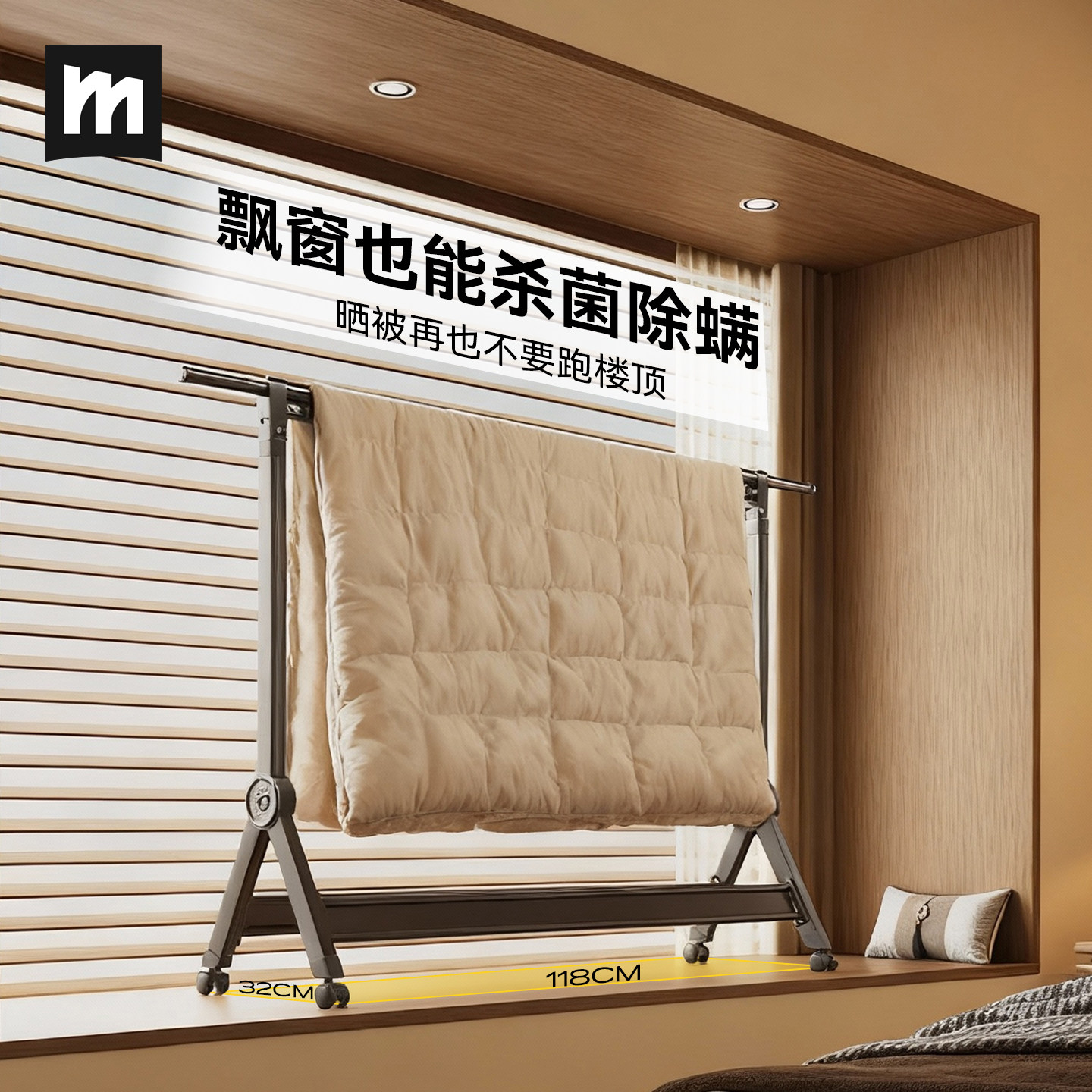 天猫名至小型折叠晾衣架阳台落地室内外伸缩晾衣杆晒被子架飘窗挂衣架
