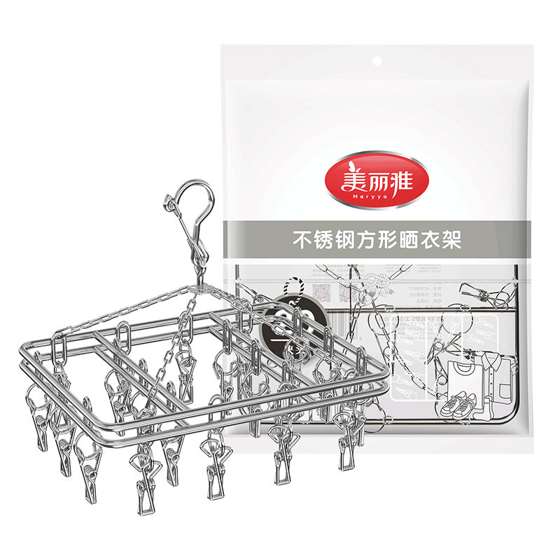 天猫美丽雅不锈钢袜子晾内衣内裤夹衣架多夹子阳台晒袜的专用神器架子