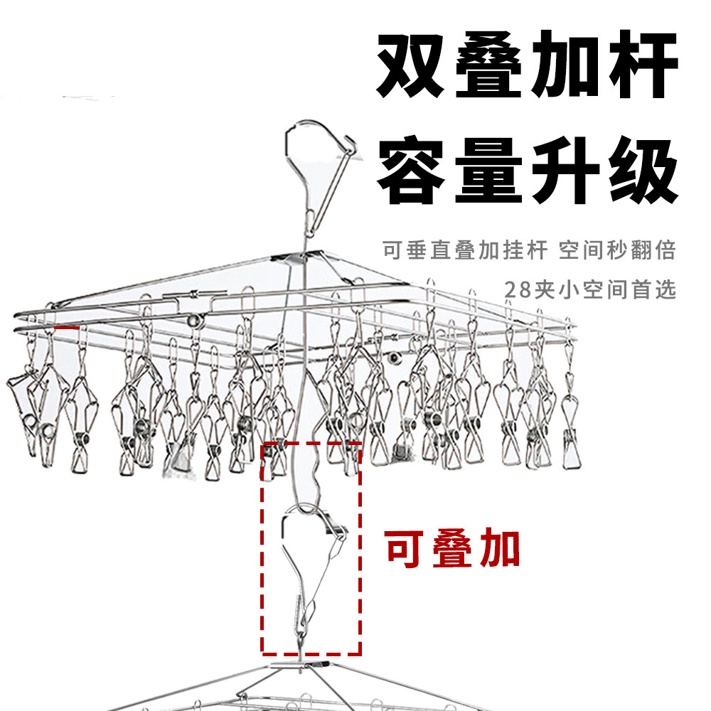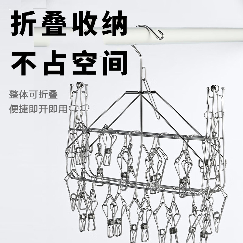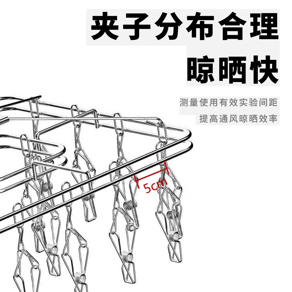 天猫304不锈钢晾衣架多夹子多功能晒袜子可折叠防风内衣山姆款带夹子