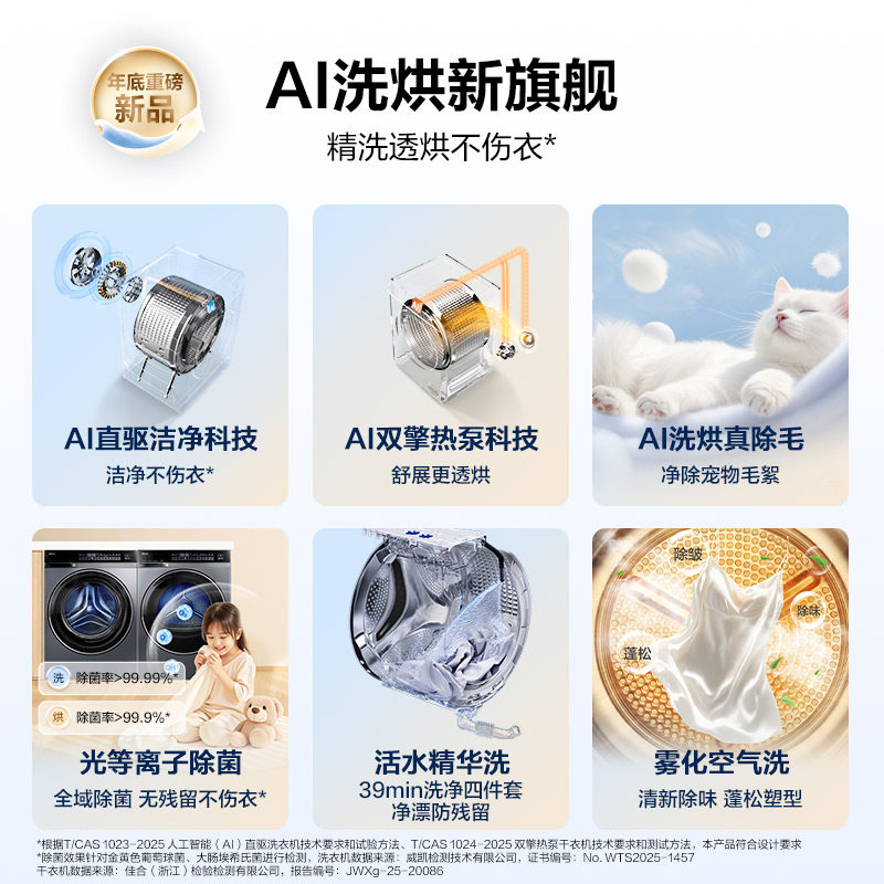 【云溪4.0】海尔582洗烘套装,集智能科技与高效洗护于一体,专为现代家庭打造。搭载精华洗技术,快速释放洗涤精华,深层去污更护衣;582mm超大筒径设计,洗涤空间更宽敞。搭配热泵式烘干机,低温均匀烘干,呵护衣物纤维,同时高效节能。双重除菌螨系统,有效杀灭细菌与尘螨,守护家人健康。智能互联功能支持手机远程操控,洗涤烘干状态一目了然。云溪4.0系列以静谧运行、简约外观融入家居环境,实现洗烘全流程高效省心,是追求品质生活家庭的理想之选。