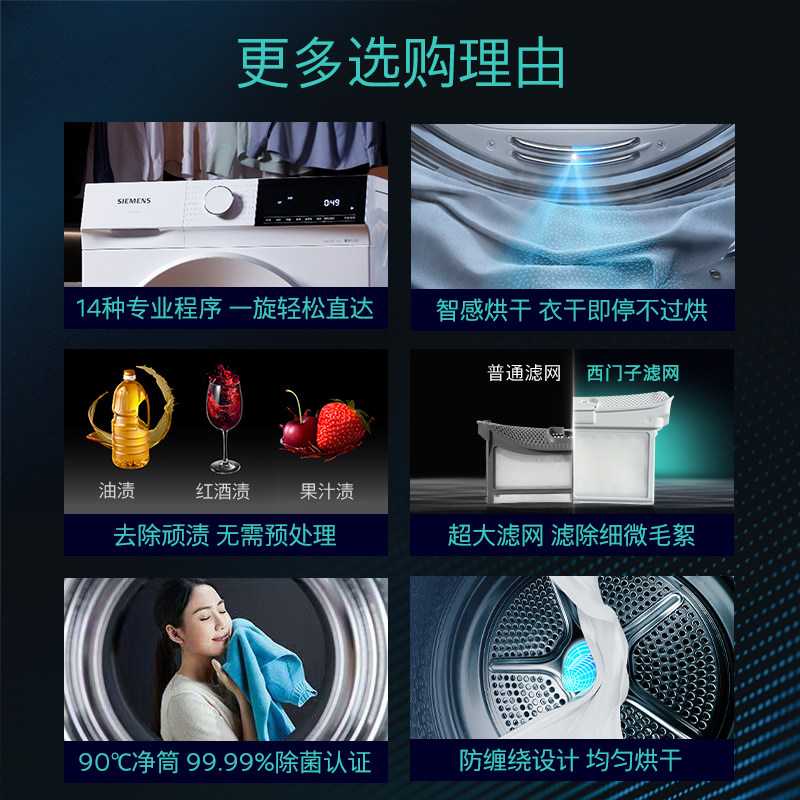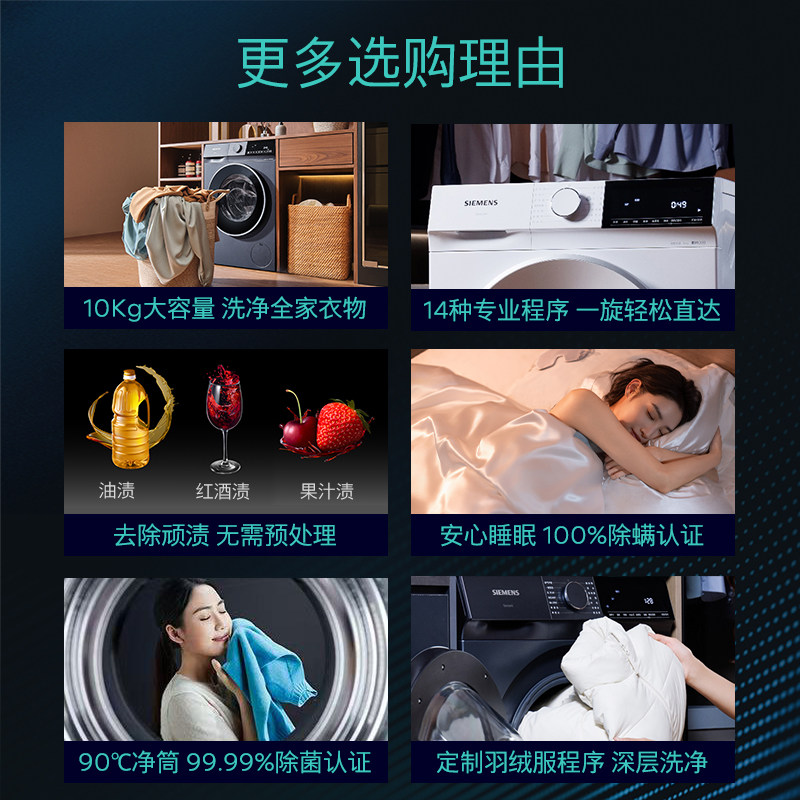天猫【蓝宝石】西门子10公斤洗烘套装家用滚筒洗衣机烘干机2D10/2D11