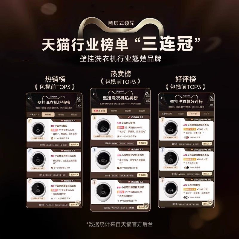 天猫【防跌落】小吉壁挂式洗衣机迷你全自动洗烘一体儿童内衣洗V3-XNB