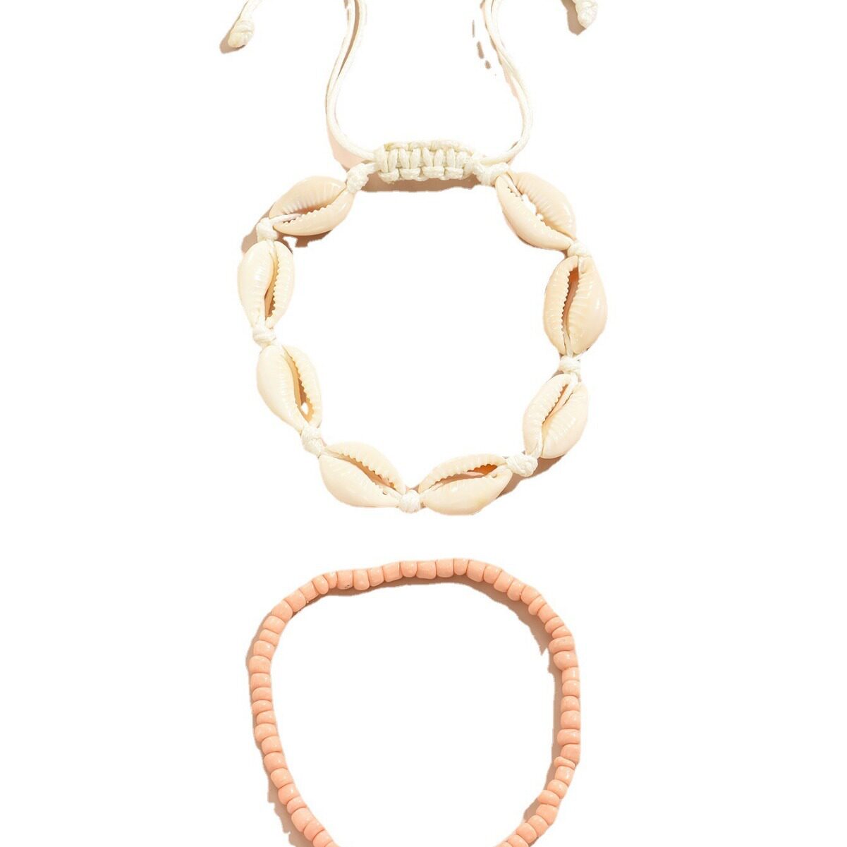 淘宝欧美脚链 米珠串珠贝壳打结脚链两件套 波西米亚风情创意脚饰
