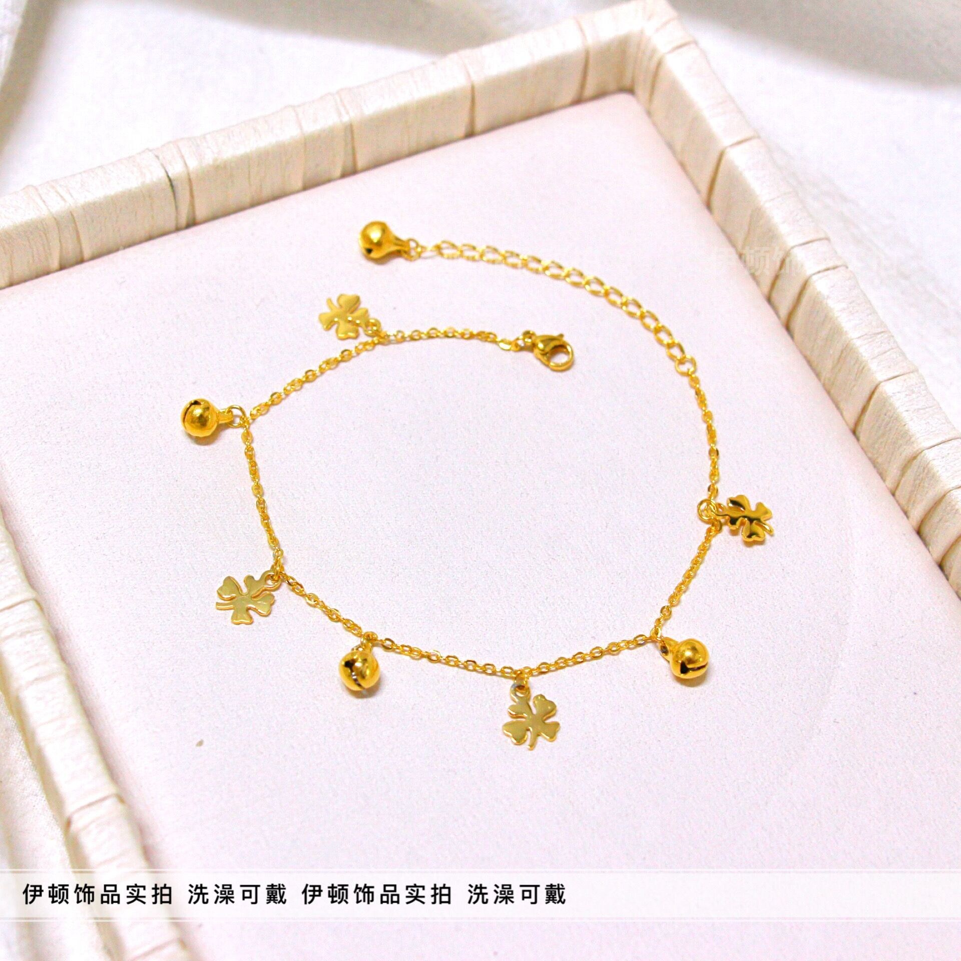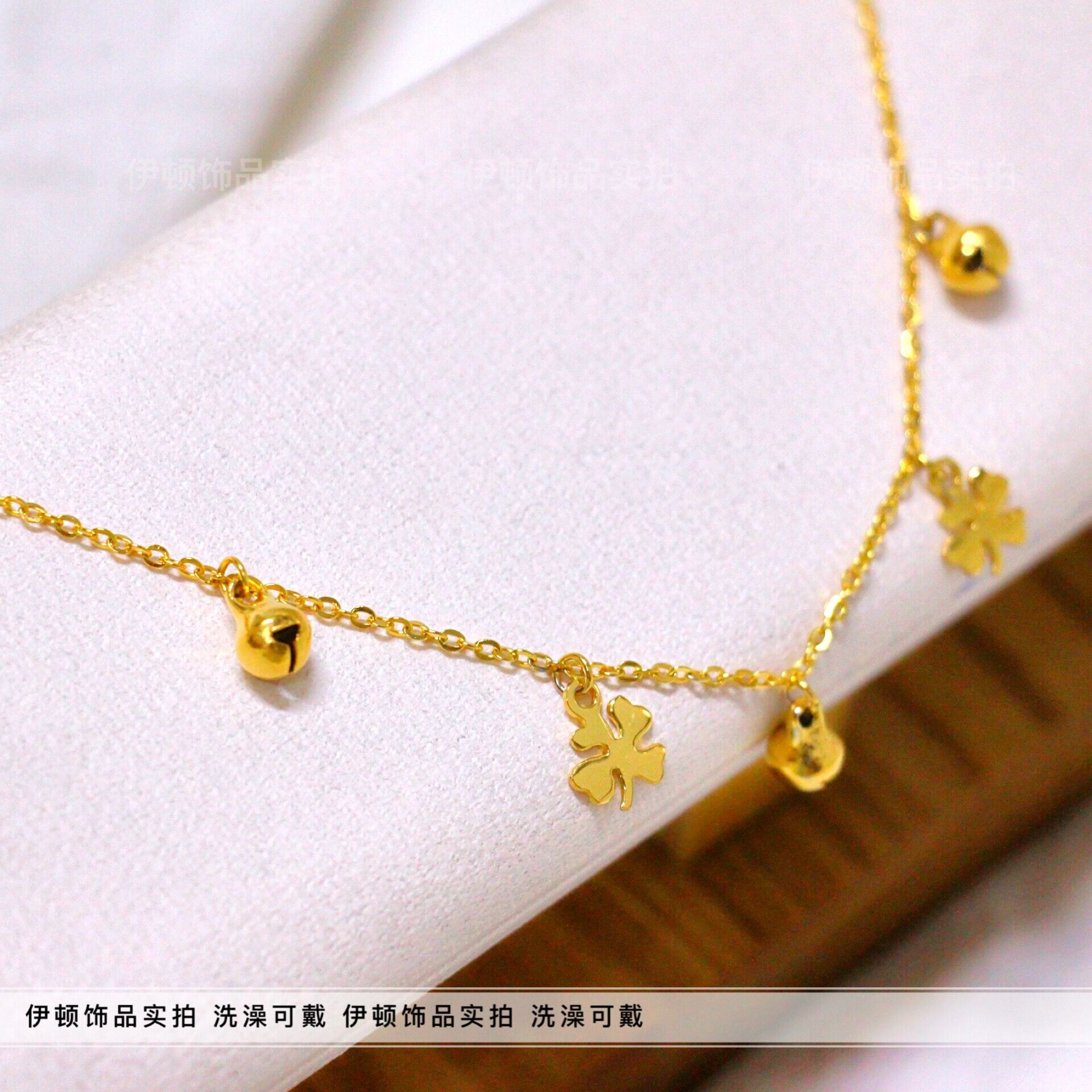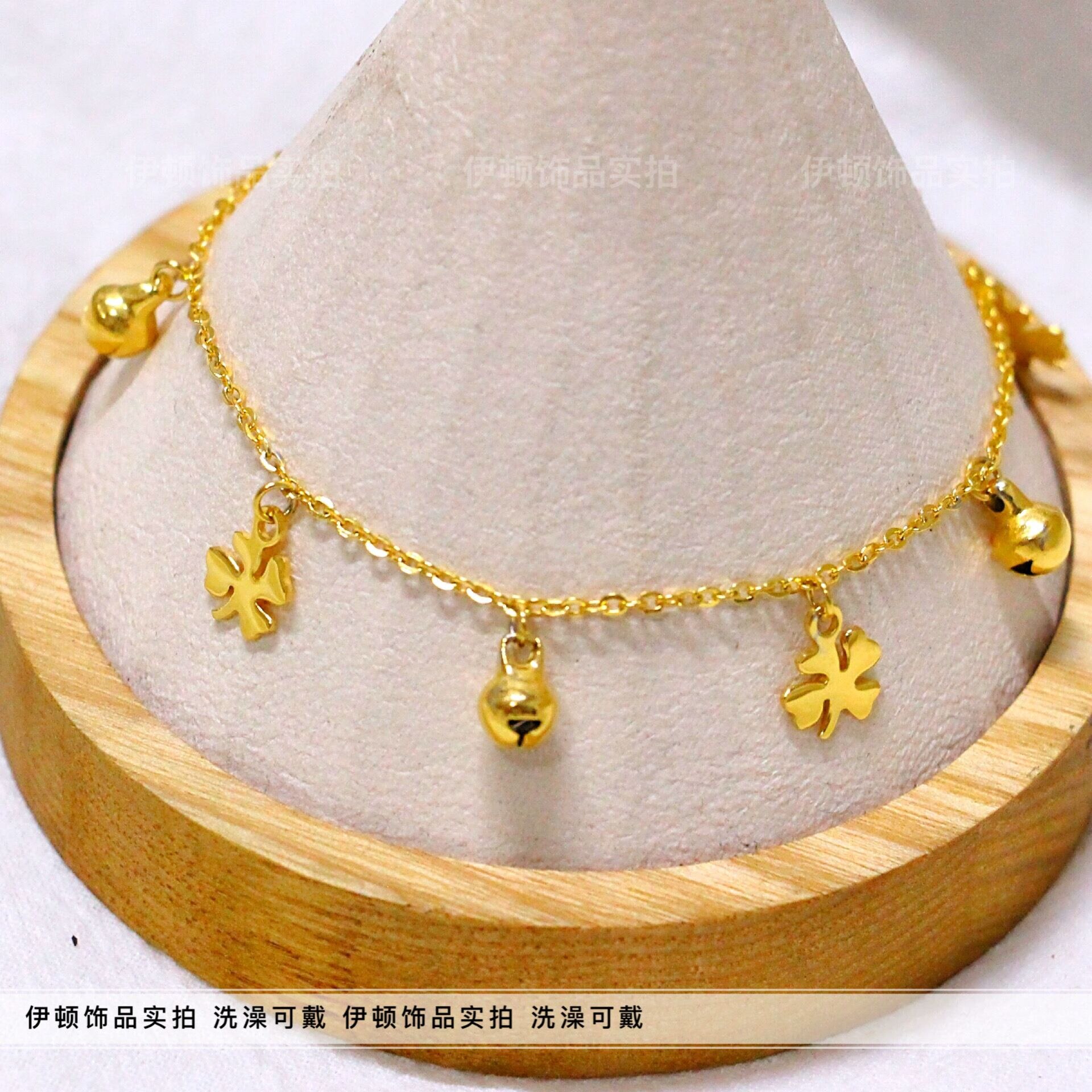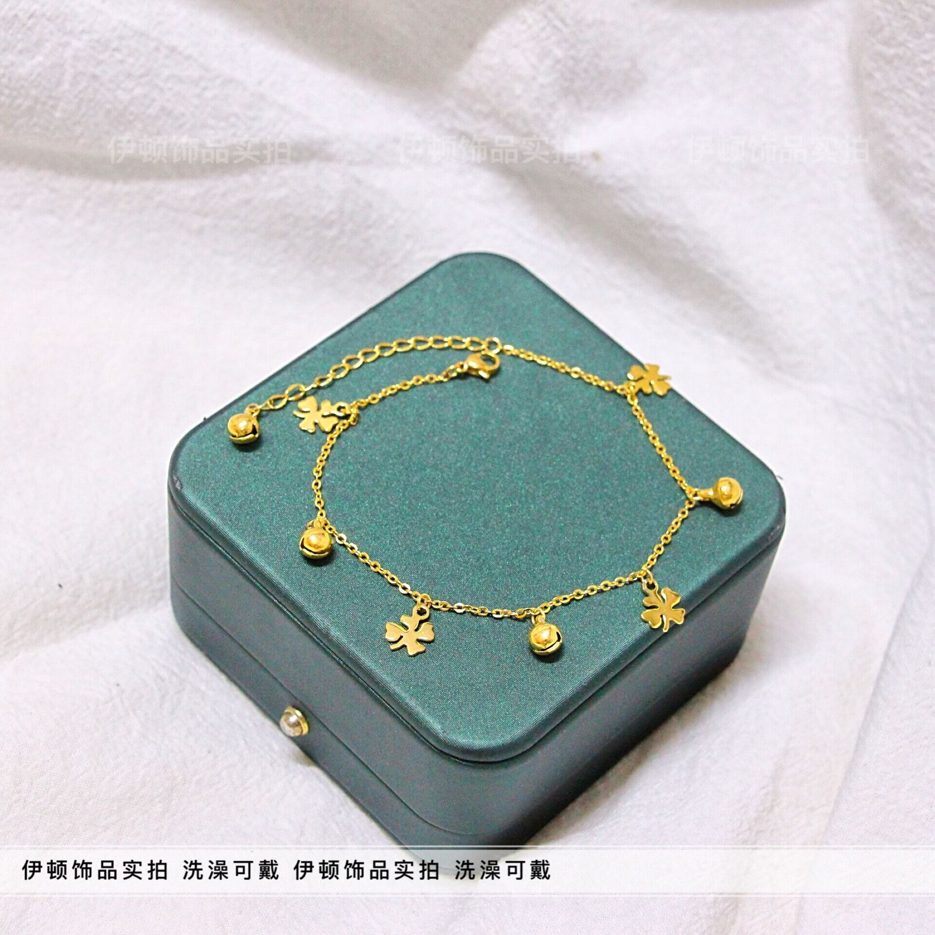 淘宝【洗澡不用摘】新款钛钢小众设计中国风幸运四叶草铃铛脚链 脚饰