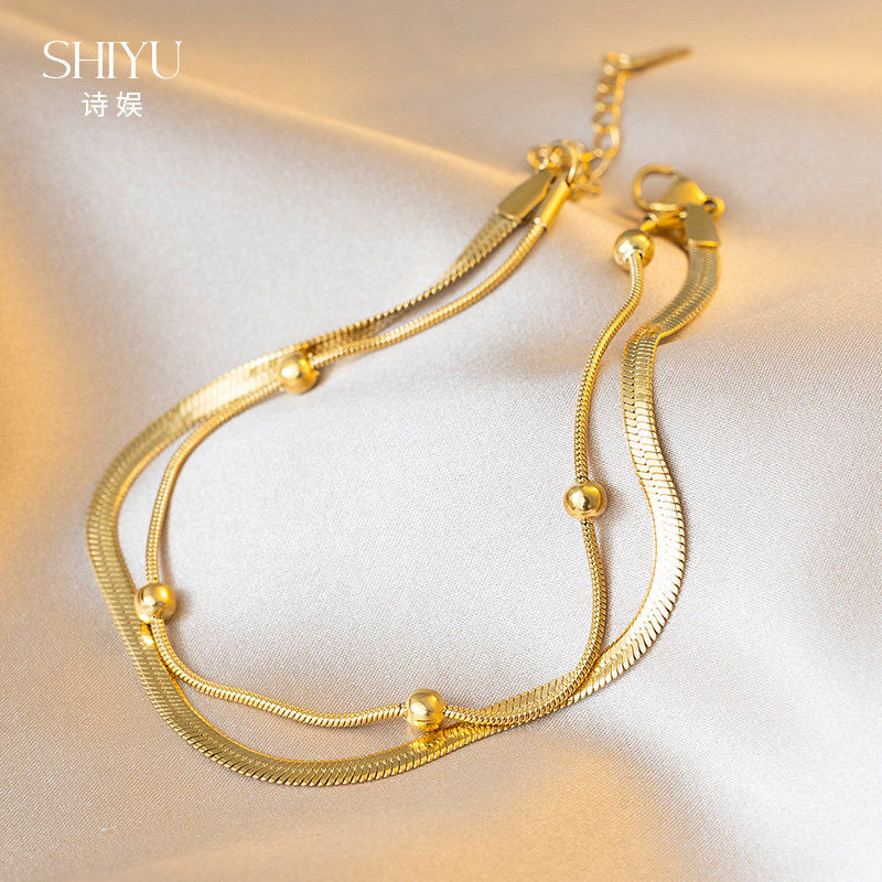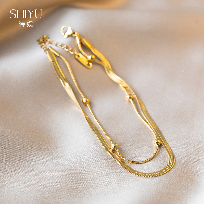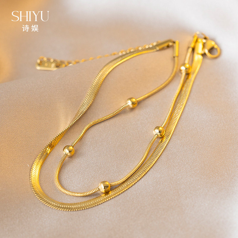 天猫2024新款双层蛇骨轻奢简约脚链女金色钛钢脚饰气质小众不褪色足链