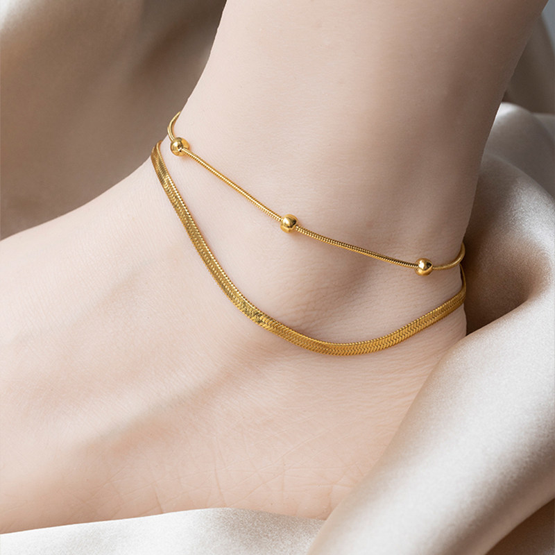 淘跨境基础款扁蛇链珠链不锈钢脚链镀18k金防水脚饰ins高级感饰品女