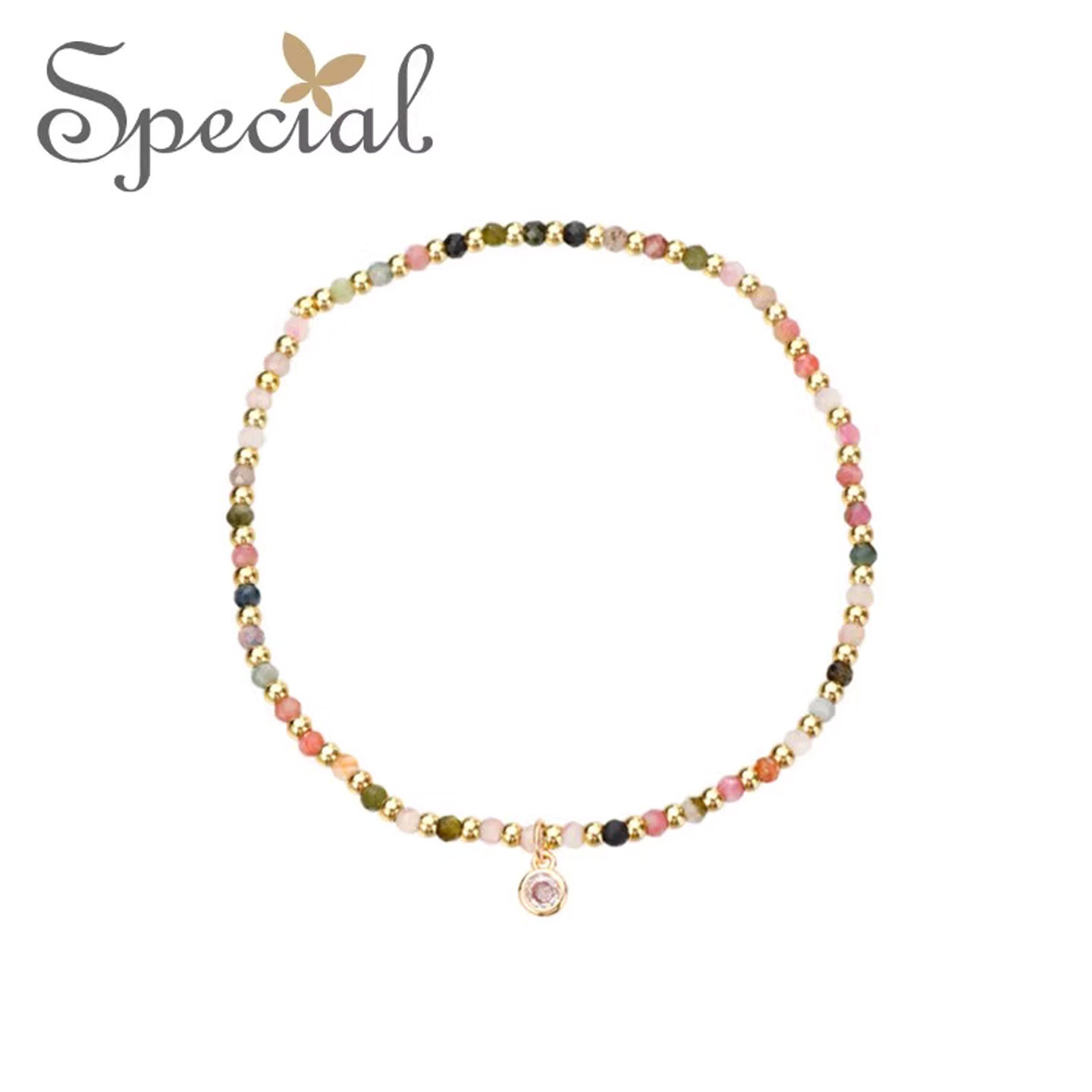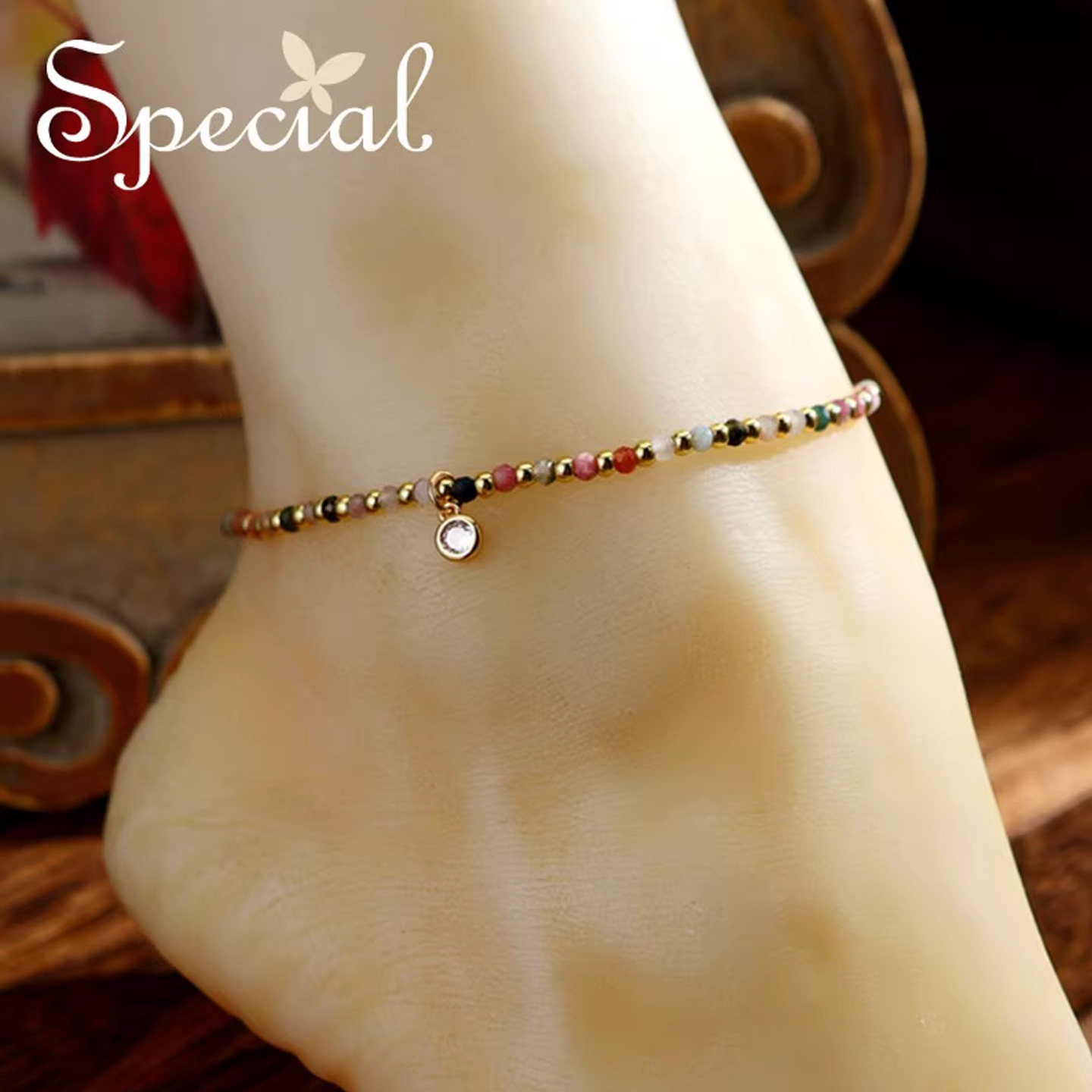 SPECIAL欧美轻奢复古设计碧玺弹性脚链,2026年新款精致脚饰,融合复古美学与现代工艺。精选天然碧玺珠,色泽温润通透,散发独特神秘光泽,寓意平安与好运。采用高弹记忆钢丝,贴合脚踝曲线,佩戴舒适不勒脚,适合多种脚型。链条与珠饰巧妙搭配,细节考究,尽显轻奢格调。无论是夏日搭配凉鞋、度假裙装,还是作为日常点睛之笔,都能彰显优雅个性。精美礼盒包装,是送女友、闺蜜或母亲的贴心礼物,传递美好祝愿与时尚品味。SPECIAL,让每一步都闪耀独特光芒。