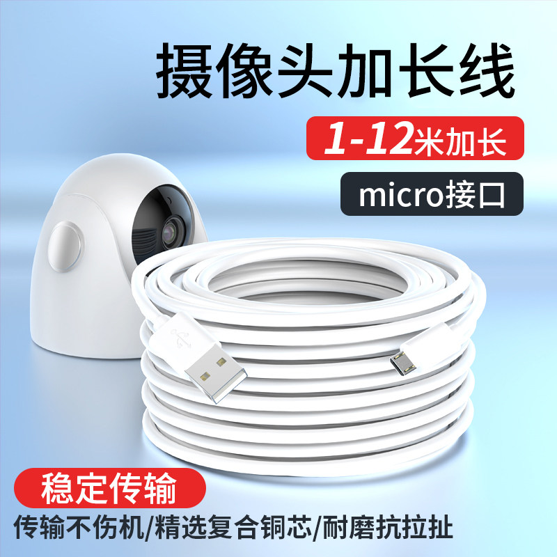 淘宝超长3米5米10米安卓typec监控电源数据线加长摄像头适用360小米摄像头线通用延长线行车记录仪供充电线12米