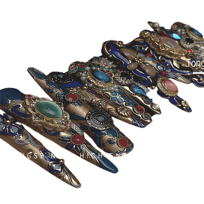 《甄嬛传》中熹妃回宫时的“嬛嬛护甲”成为经典造型,其精致雕花与华贵气质令人印象深刻。如今,以剧中元素为灵感的穿戴甲、美甲贴、甲片等现代美甲产品广受欢迎,尤其适合夏季清新风格。这些甲片采用轻便材质,图案复刻剧中护甲的细腻雕花,兼具古典韵味与时尚感。孕妇、新娘及日常爱美女性均可安心使用,无需打磨指甲,即贴即美,方便拆卸。无论是参加婚礼、拍摄古风写真,还是日常点缀指尖,都能展现优雅气质。甄嬛同款美甲不仅是对经典的致敬,更让现代女性在指尖重现宫廷风华,演绎属于自己的“嬛嬛之美”。