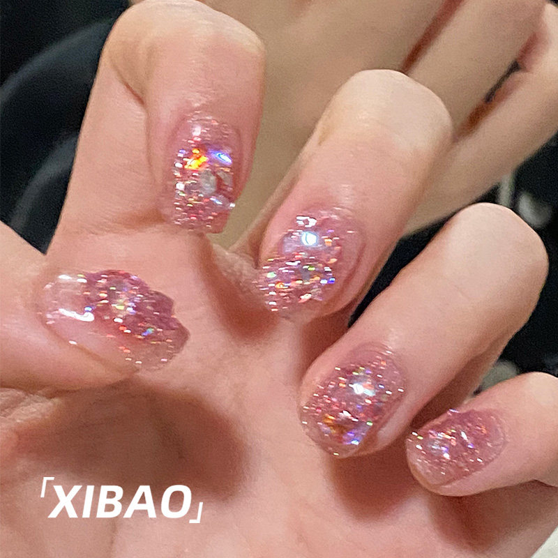 精致穿戴甲短款春日高级感手工穿戴美甲2025年新款爆闪重工短戴甲