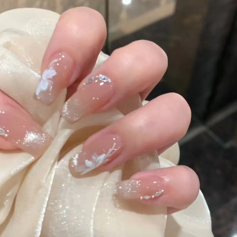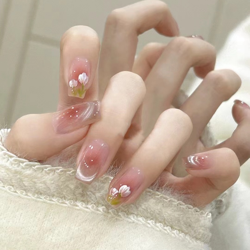 这款春夏短款穿戴甲采用精致手工制作,融合当下流行的猫眼、手绘郁金香与腮红晕染元素,呈现出温柔浪漫的法式美学。甲片选用优质材质,轻薄贴合,佩戴舒适,短款设计更显手指纤细修长。猫眼效果在不同光线下闪耀迷人光泽,手绘郁金香细腻生动,搭配粉嫩腮红渐变,宛如春日花园绽放指尖。无需胶水,即贴即用,轻松拆卸不伤本甲,适合日常通勤、约会或度假等多种场合,是追求个性与便捷的时尚美甲首选,让美丽触手可及。