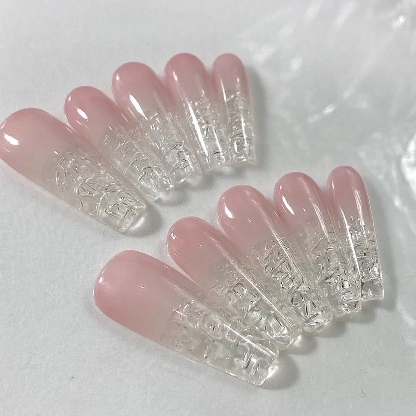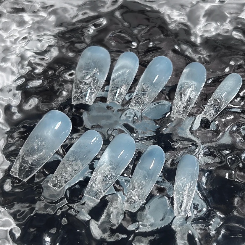 2024年夏日新款手工穿戴甲,以“冰透裸色”为基调,融入清透水感的天蓝色渐变,宛如夏日晴空与海波的温柔交融。指尖点缀简约琉璃质感,搭配微闪碎玻璃元素,营造出晶莹剔透、轻盈灵动的视觉效果。整体设计清新雅致,兼具高级感与夏日氛围,轻松适配日常通勤或度假造型。采用环保材质,佩戴舒适,拆卸便捷,满足不同甲型需求。无论是搭配浅色衣裙,还是点缀简约穿搭,都能为指尖增添一抹清凉亮色,是今夏不可错过的时尚美甲新选择。