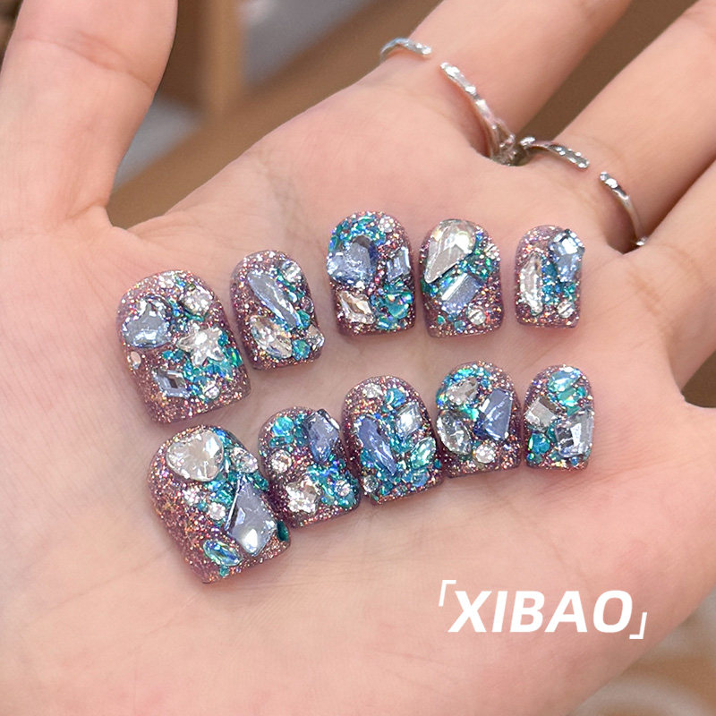 淘宝精致穿戴甲短款春日高级感手工穿戴美甲2025年新款爆闪重工短戴甲