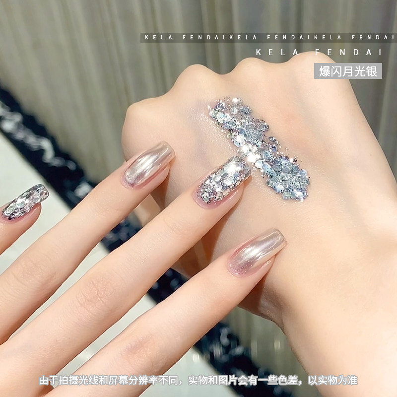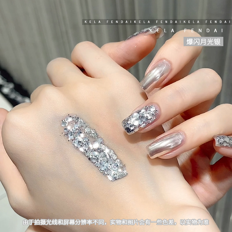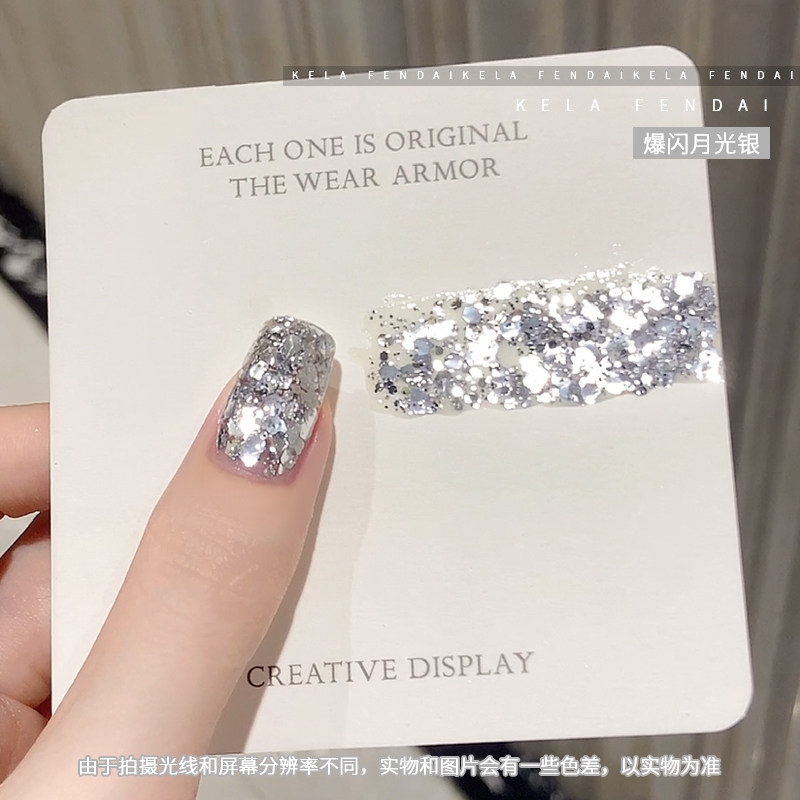 淘宝爆闪月光银色大亮片指甲油胶2026年新款流行显白美甲店专用光疗胶