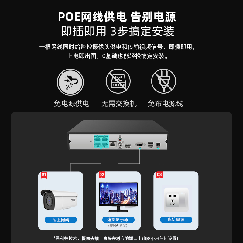 海康威视800万poe摄像头高清全彩夜视室外商用连手机远程4K监控器