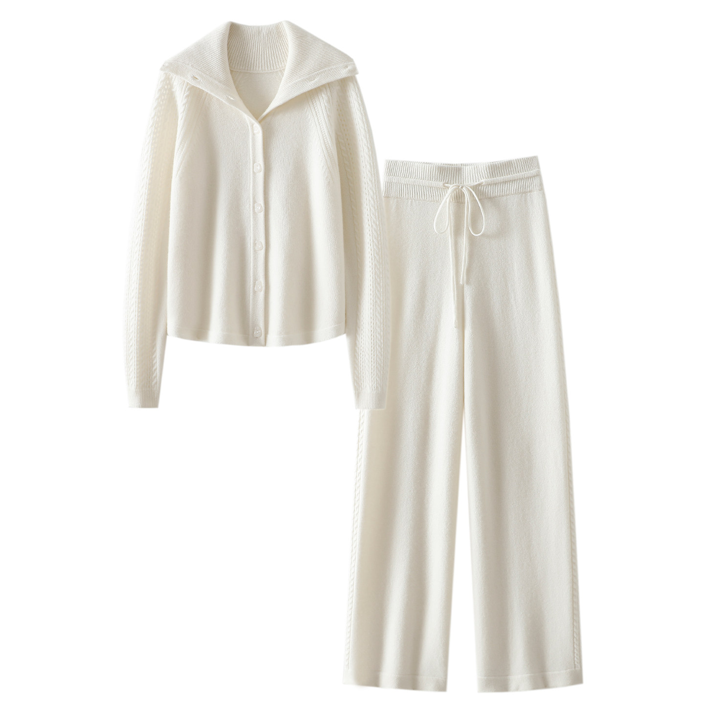 天猫惊艳王炸!加厚100%纯山羊绒开衫女羊绒毛衣针织羊绒裤子外穿套装