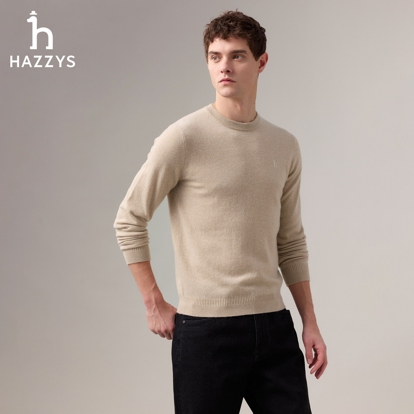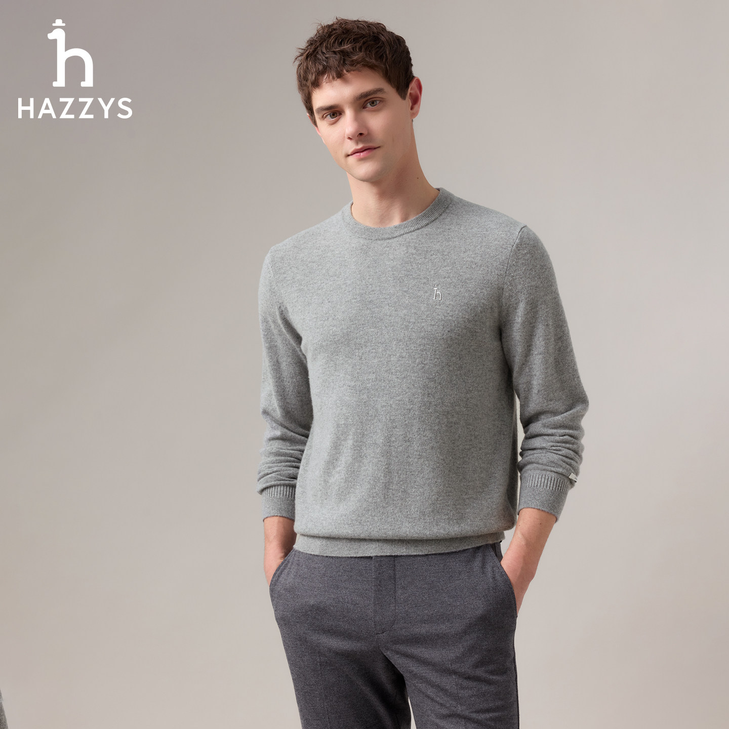 Hazzys秋冬哈吉斯男装圆领纯色长袖针织衫休闲通勤保暖羊毛上衣潮
