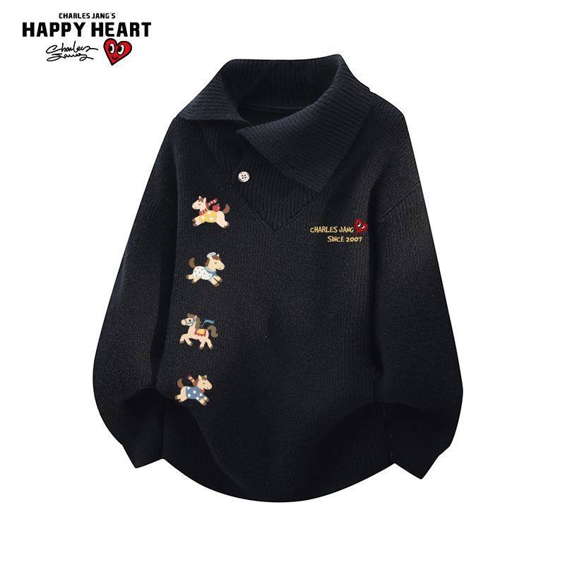 天猫查尔斯桃心马年2026新款针织衫线衣男女冬季保暖休闲红色情侣毛衣