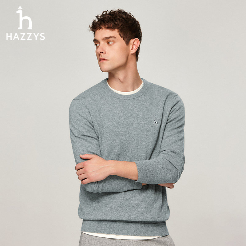 天猫Hazzys秋冬哈吉斯男装圆领纯色长袖针织衫休闲通勤保暖羊毛上衣潮